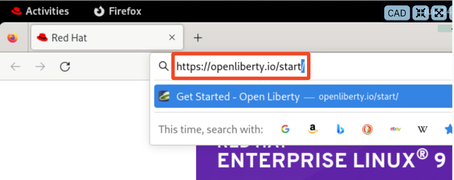 Type the URL as: https://openliberty.io/start/ and press Enter.