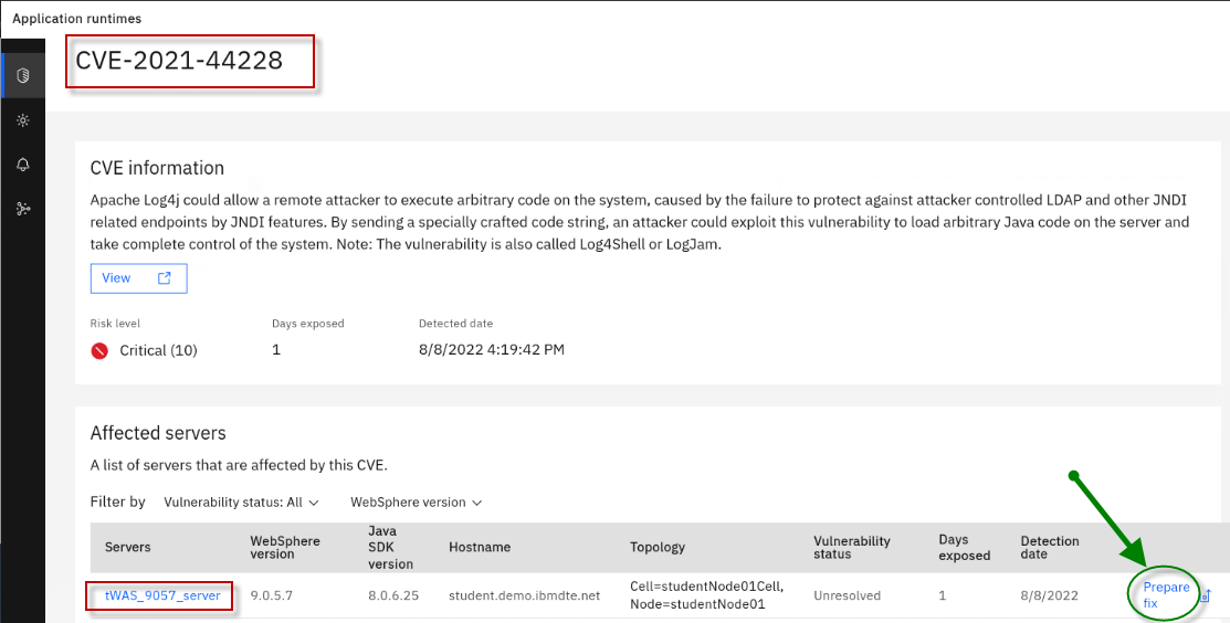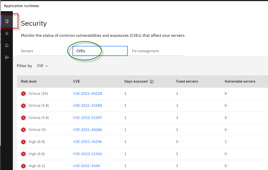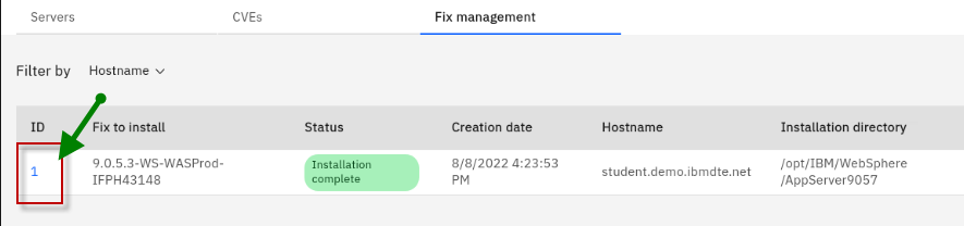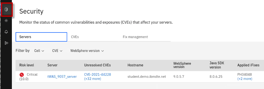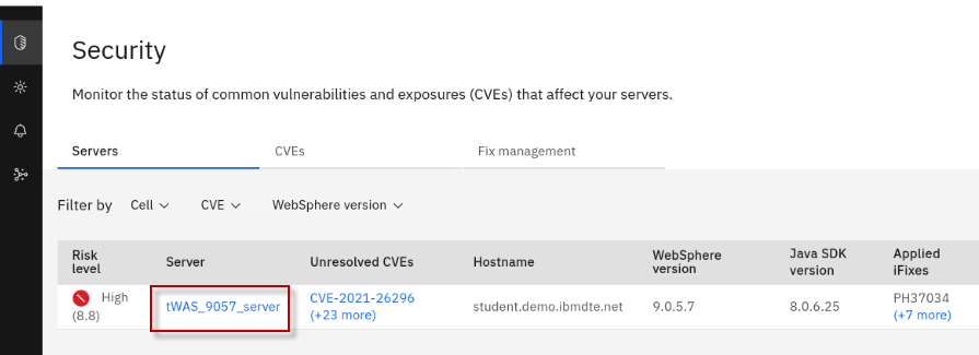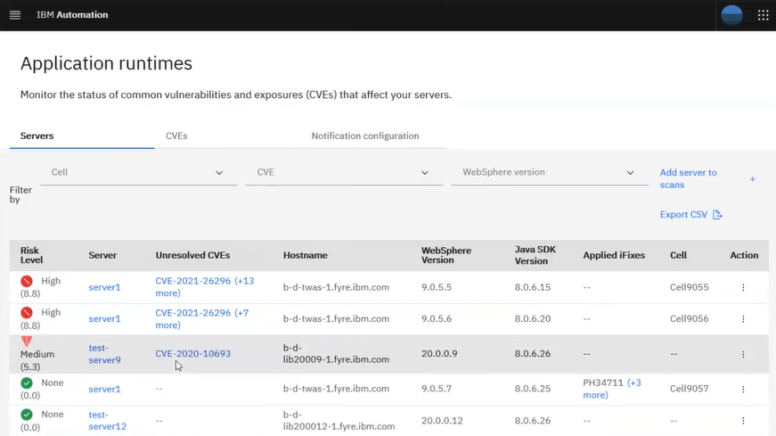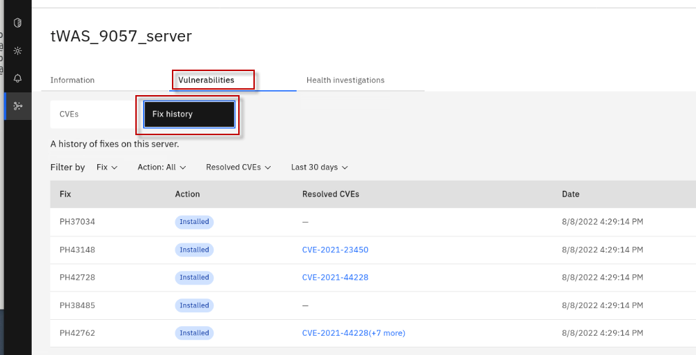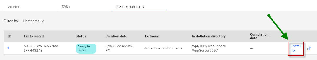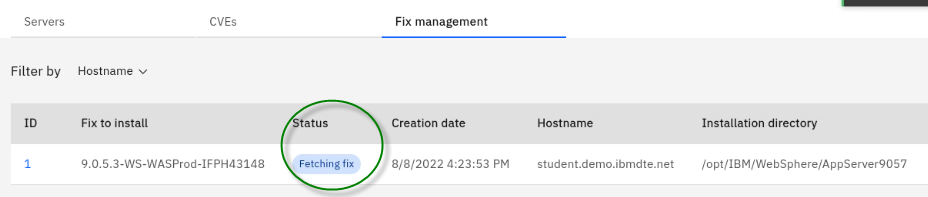The Fix Deployment capability of WebSphere Automation delivers determines which APARs and interim fixes resolve a specific vulnerability, and enables one-click download and deploy of fixes. This capability augments the existing automated vulnerability assessment and fix history tracking.