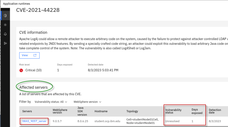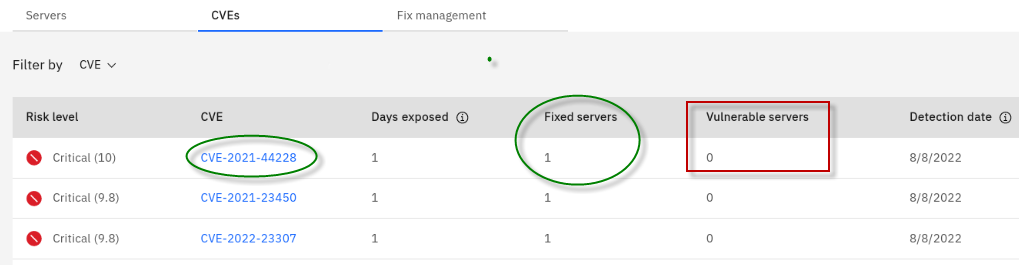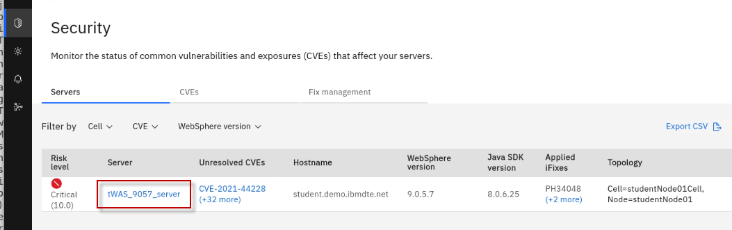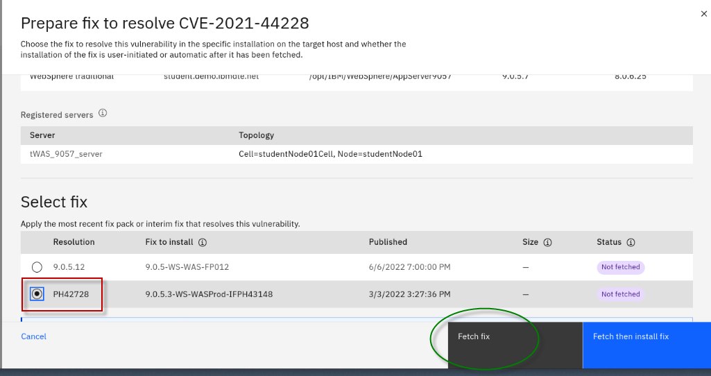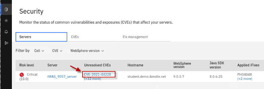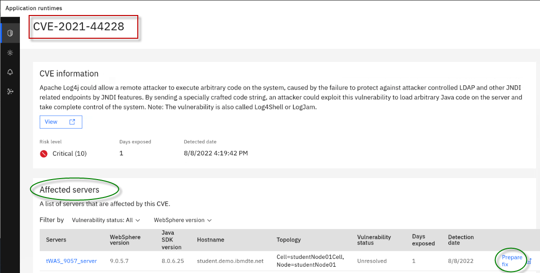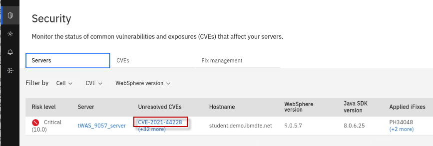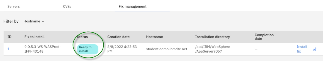 The Fix Deployment capability of WebSphere Automation delivers determines which APARs and interim fixes resolve a specific vulnerability, and enables one-click download and deploy of fixes. This capability augments the existing automated vulnerability assessment and fix history tracking.