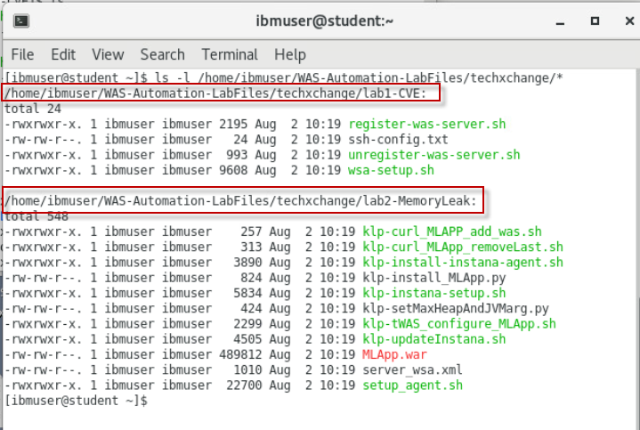 ls -l /home/ibmuser/WAS-Automation-LabFiles/techxchange/*