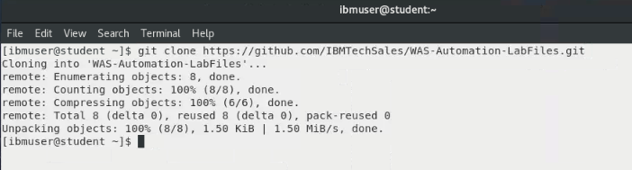 git clone https://github.com/IBMTechSales/WAS-Automation-LabFiles.git