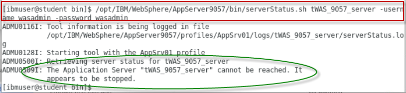 /home/ibmuser/WAS-Automation-LabFiles/techxchange/lab2-MemoryLeak/klp-curl_MLApp_removeLast.shb. Stop the WebSPhere Application Server