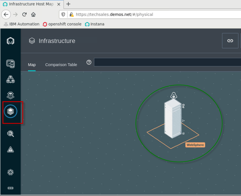 In the WebSphere Automation UI, click on the
