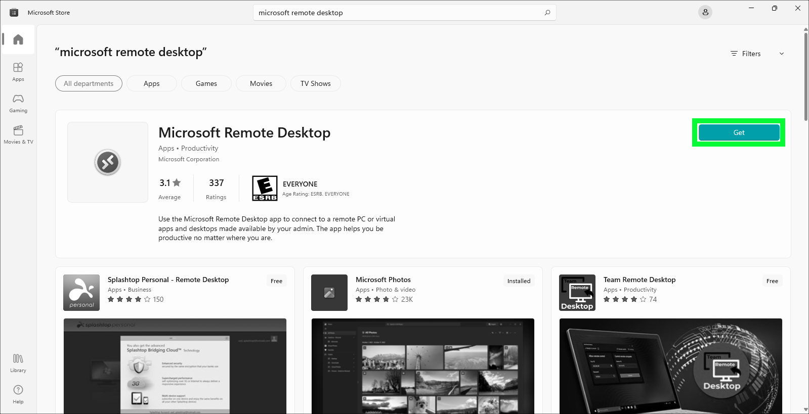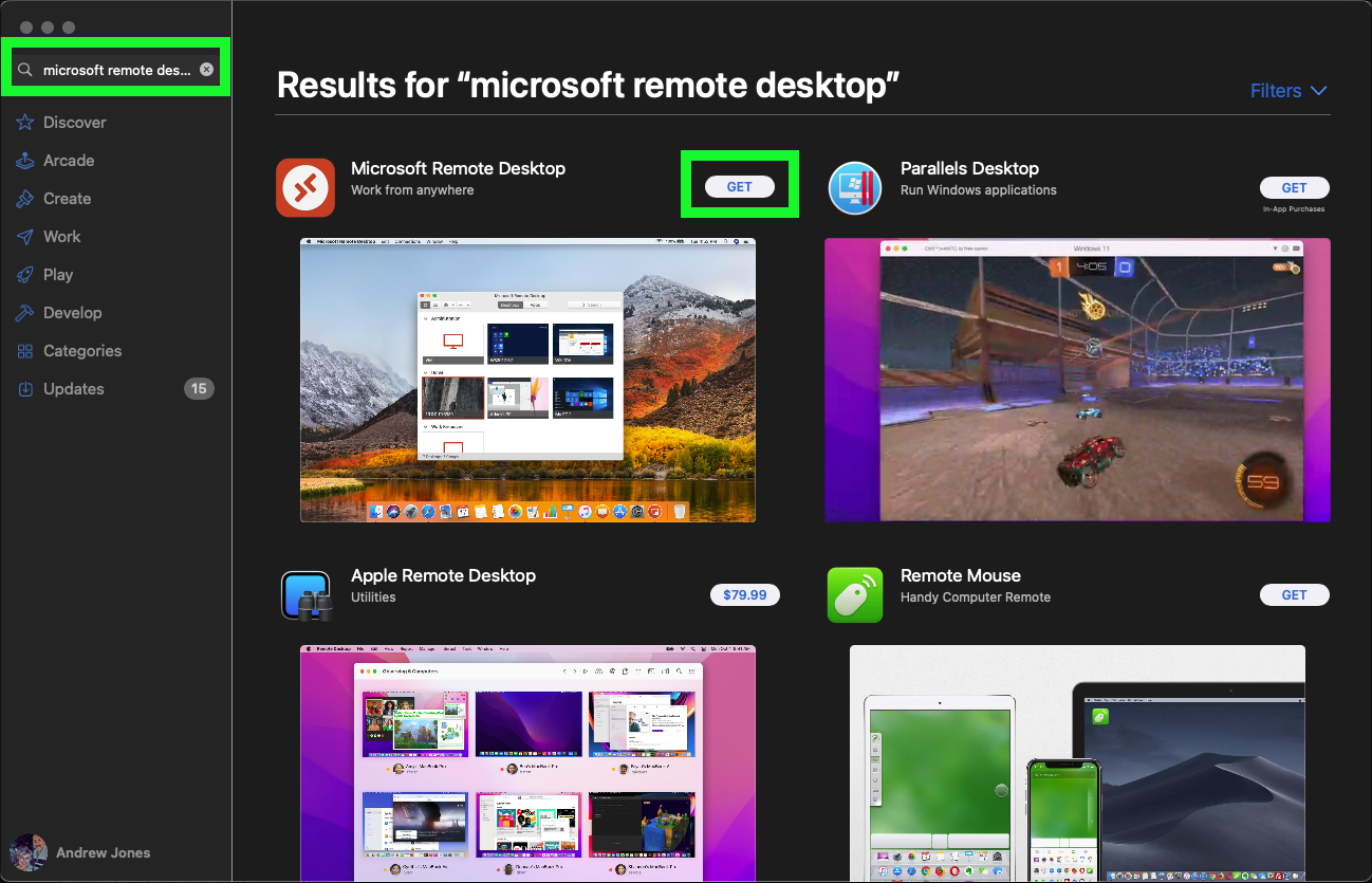 If not already installed, open the Microsoft App Store and search on "Microsoft Remote Desktop".
