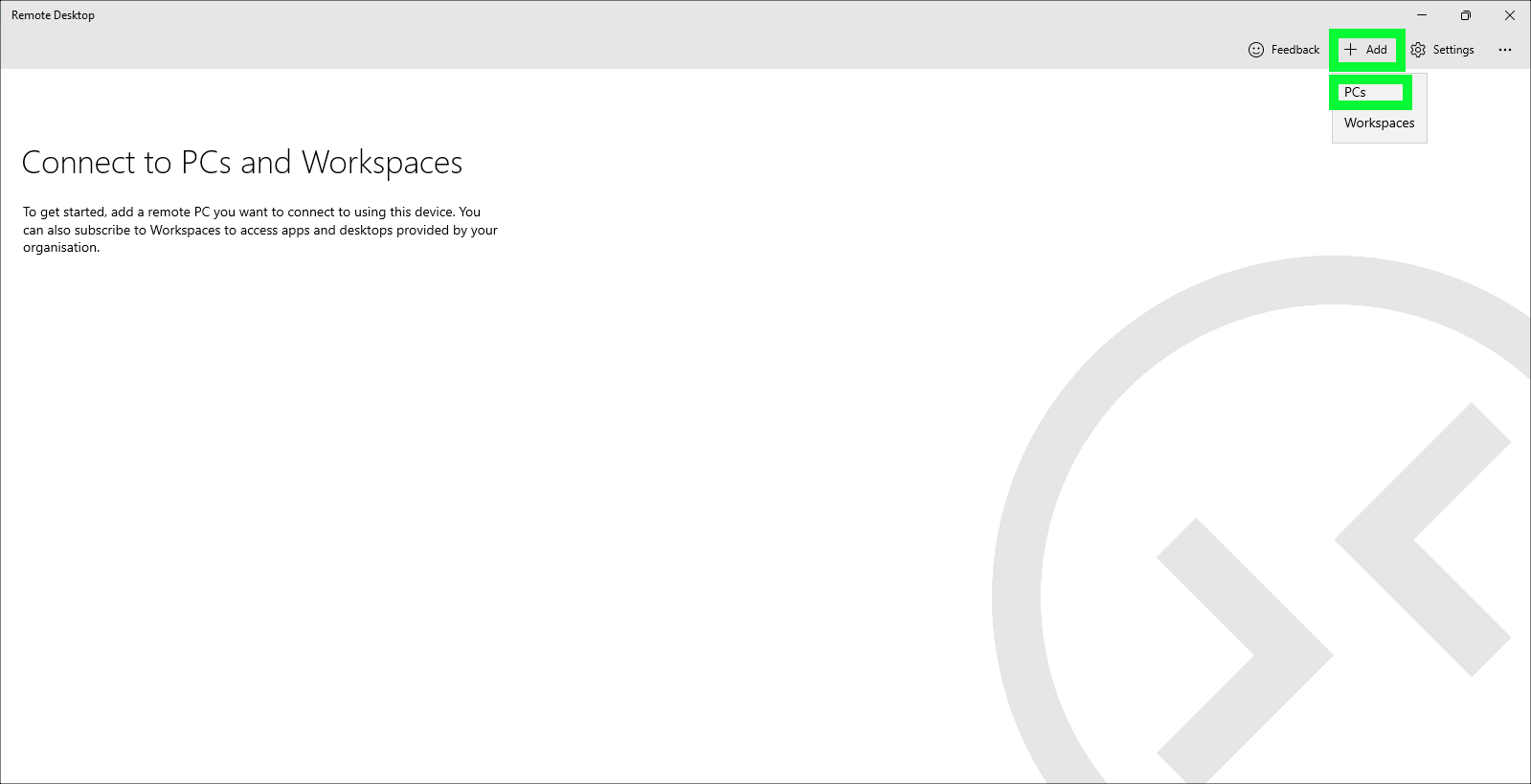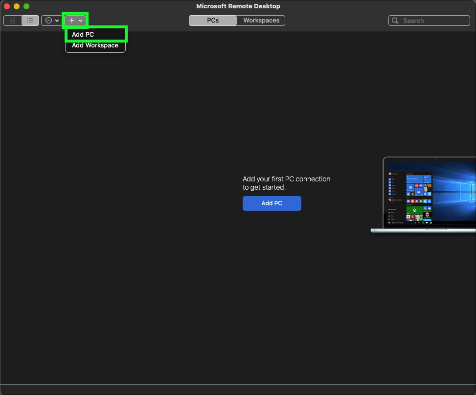 - Click the + Add button at top right and then click PCs.