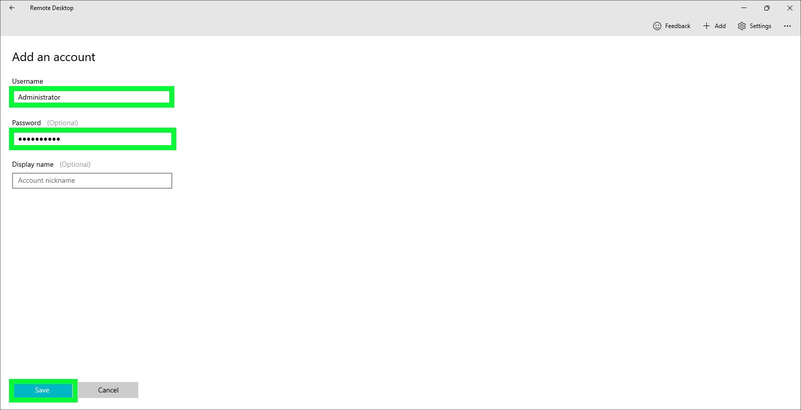 - Enter Administrator in the Username field and il0vedem0s in the Password field and click Save.