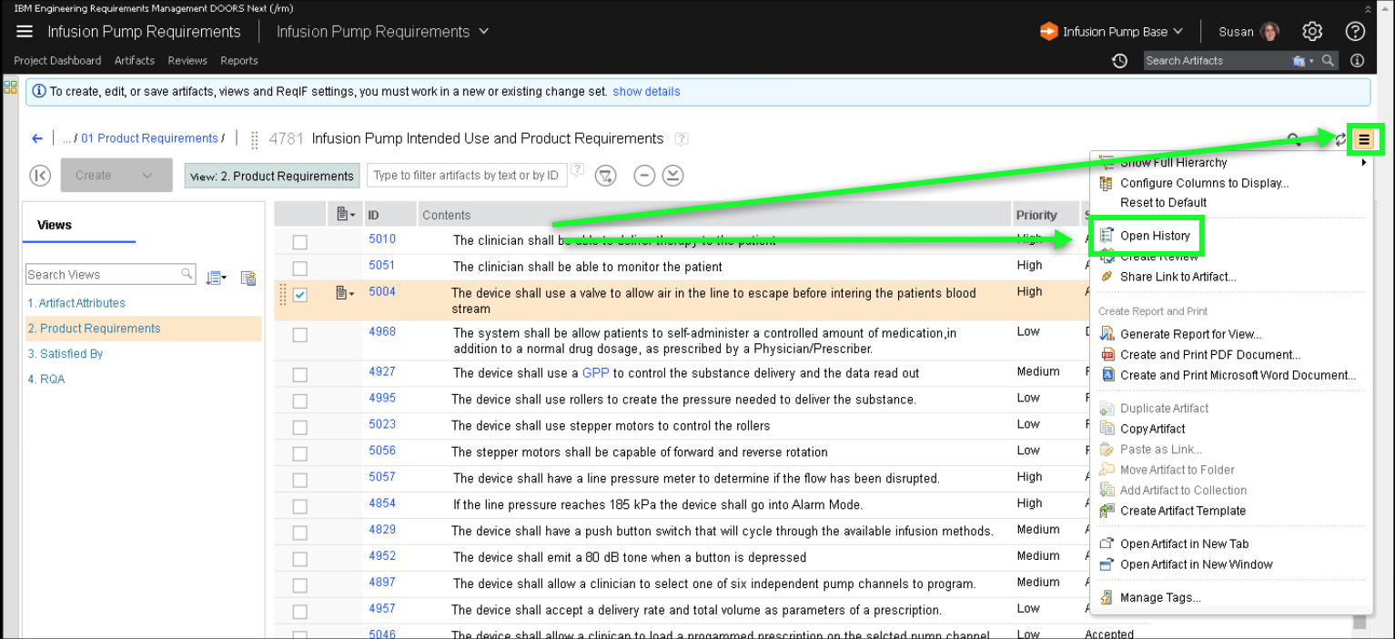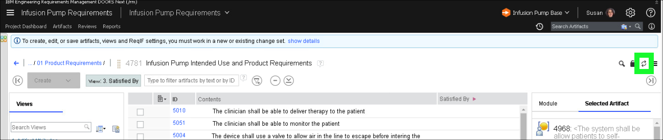 Traditionally, traceability is maintained in separate documents such as spreadsheets. This is a manual process, prone to error, very costly to maintain, and usually outdated as soon as the author clicks “save”. Here traceability is added, maintained, and tracked directly in the IBM solution and can easily be reported on.