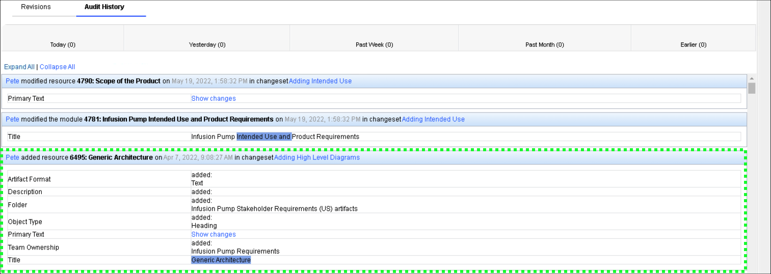 From this view, auditors can view who changed what, when the change was made, and in which change set.