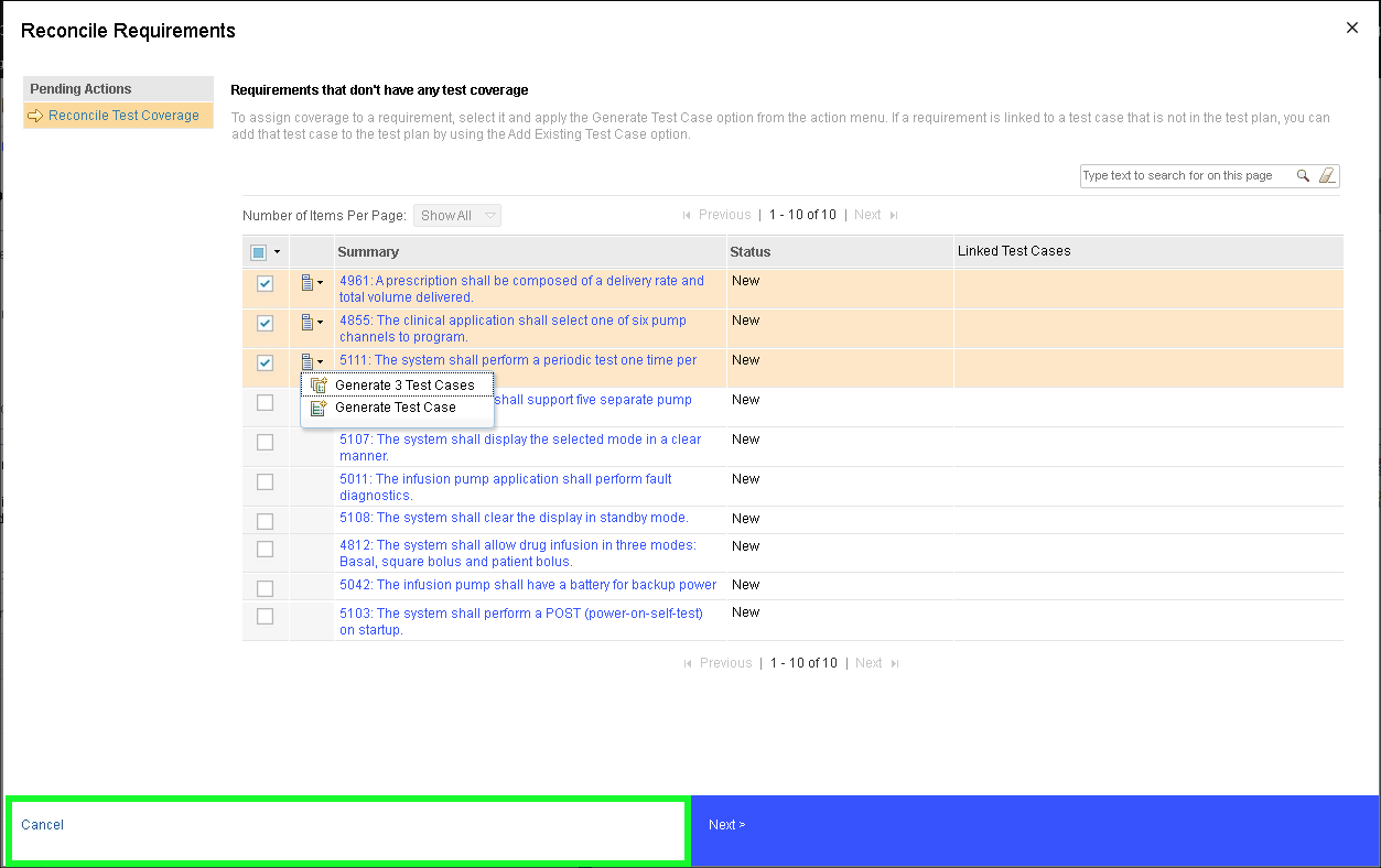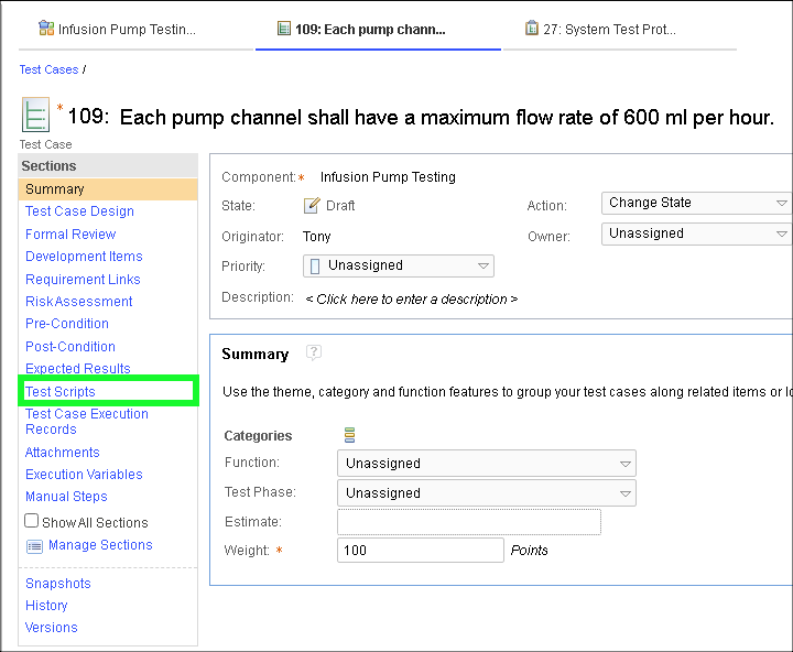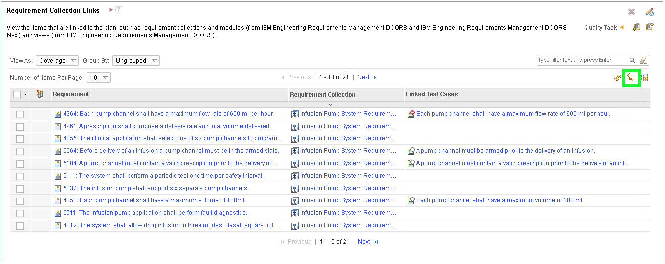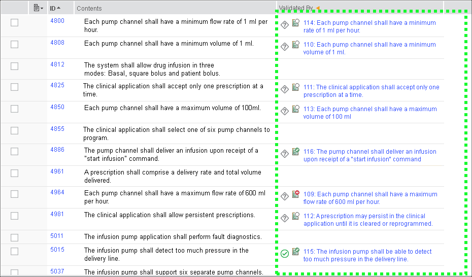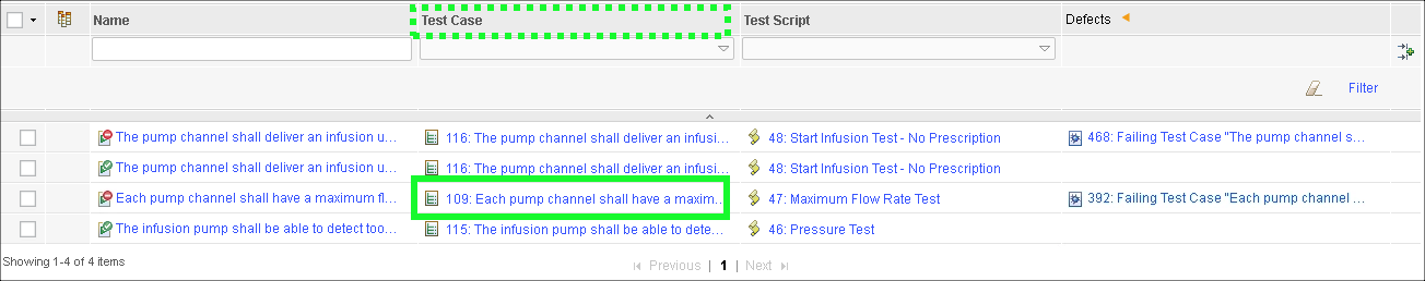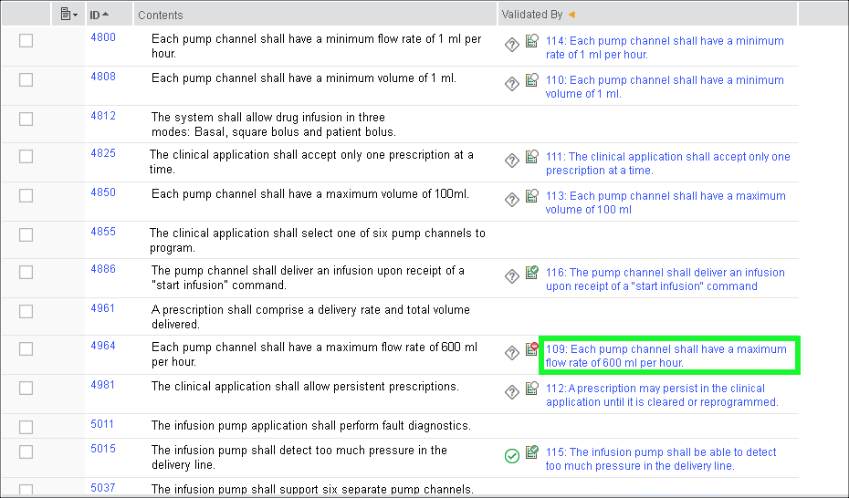 - Click 109: Each pump channel shall... link in the Test Case column.