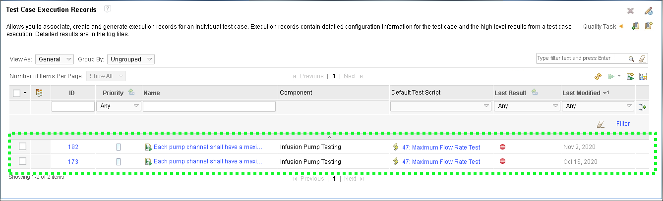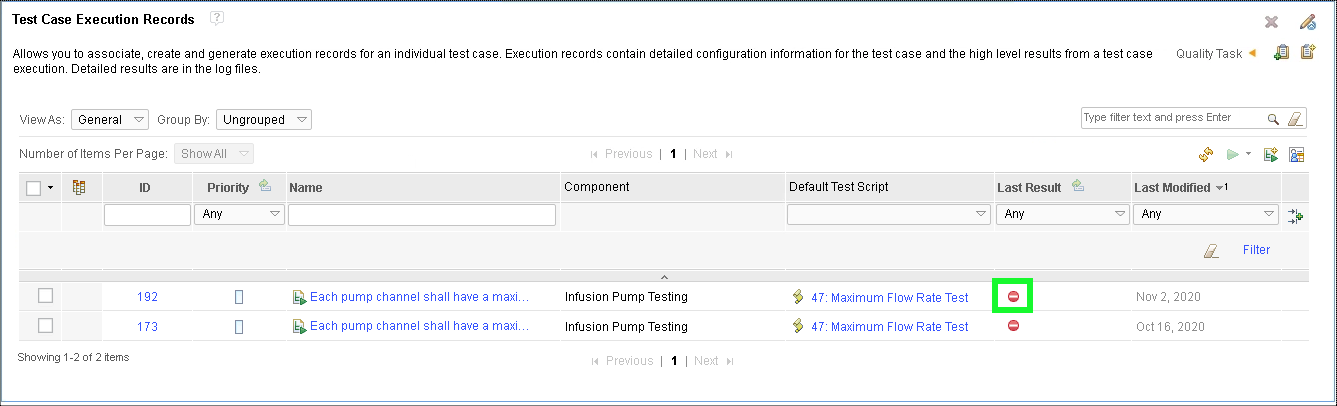 - Notice this shows all the execution runs of this test case, which test script was executed, and the result of the test.