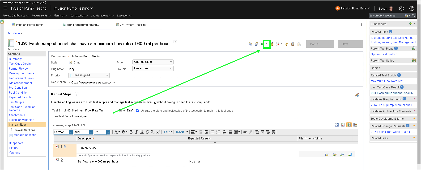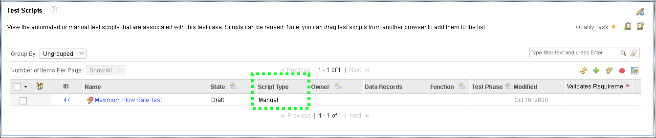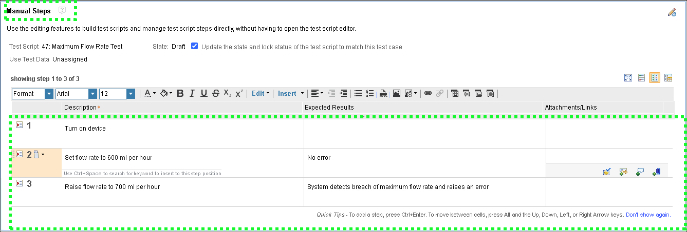 - Notice this is a manual test script, and the steps and expected results are displayed.