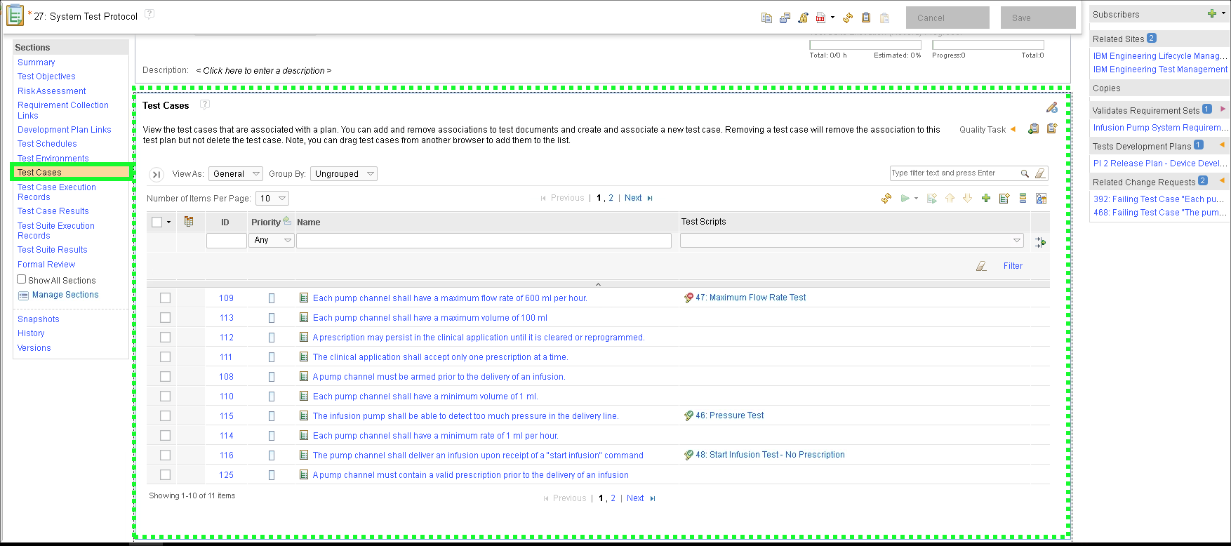 Test Cases can be manual or automated. For automated test cases, RQM can invoke the test and gather the results here in the hub. Automated tests could be executed by testing tools like those National Instruments.