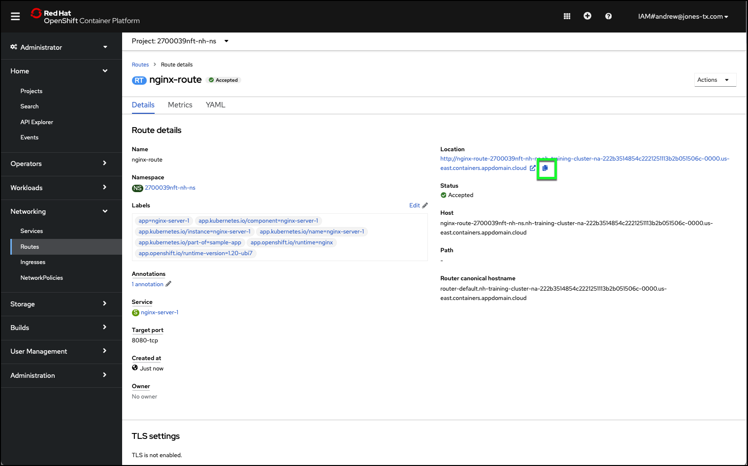 Once the route is created, your web browser will redirect to the details page of the newly created route.