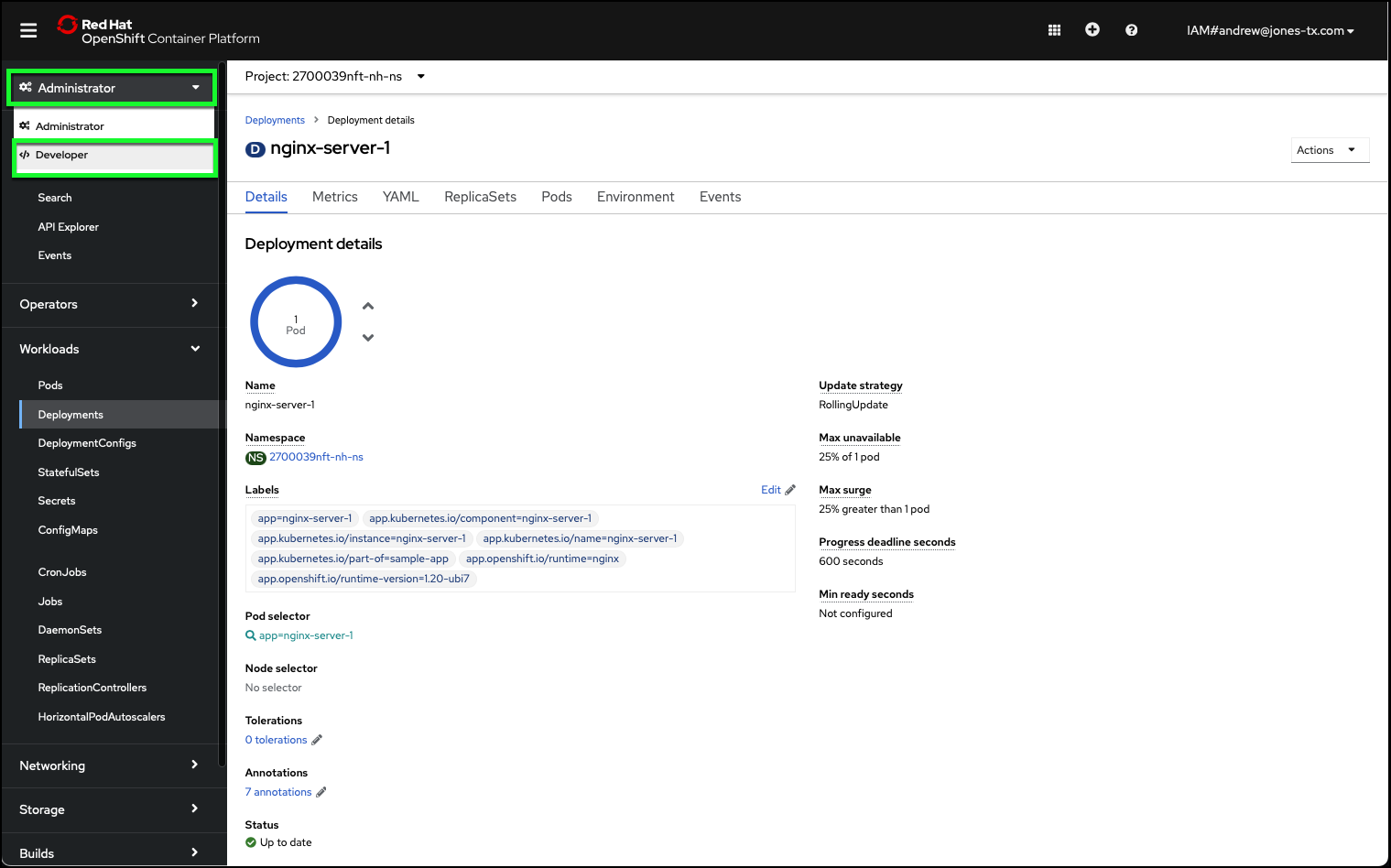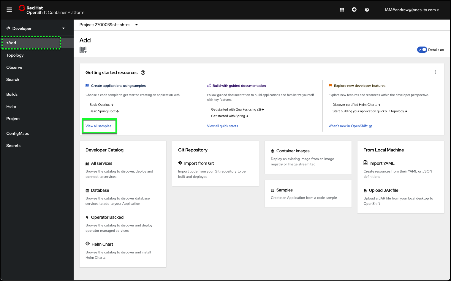 - Return to the Developer perspective in the OpenShift web console.
