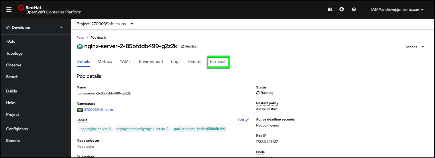 - Click the name of the running Pod to display more information.