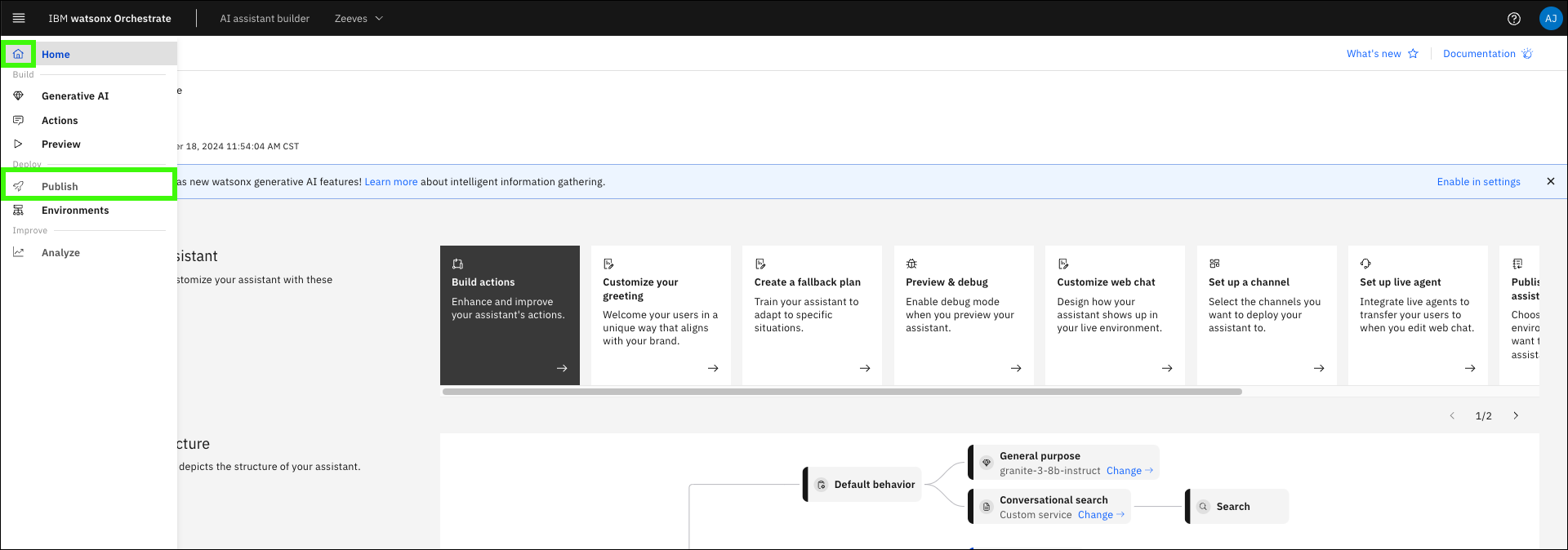 Follow these steps to publish the first version of your assistant by using Assistant Builder: