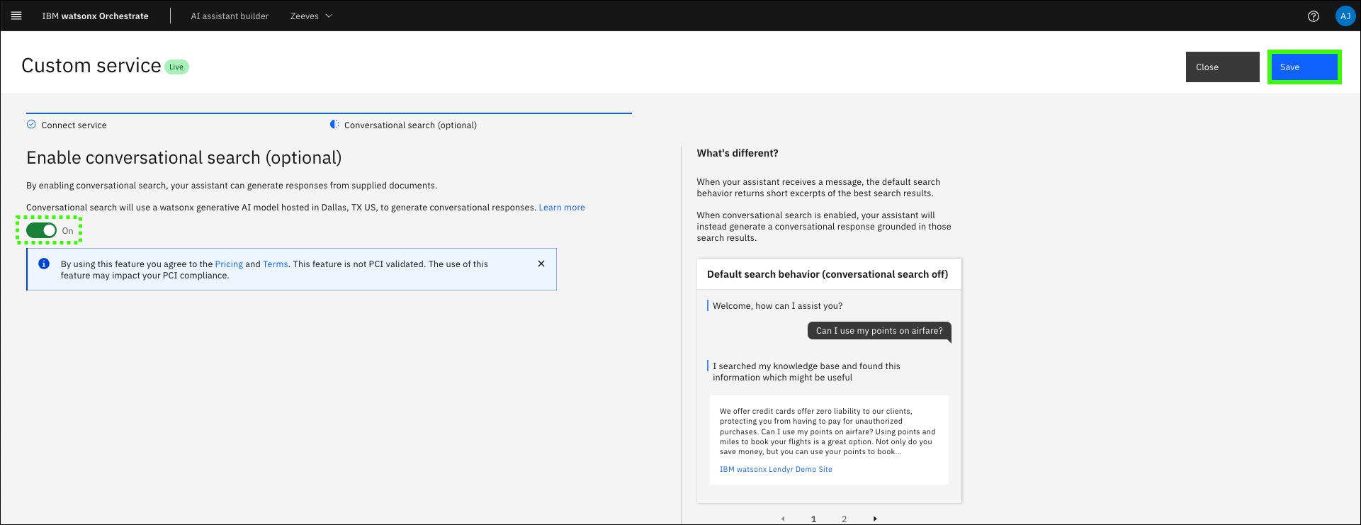 Verify conversational search is enabled and click Save.