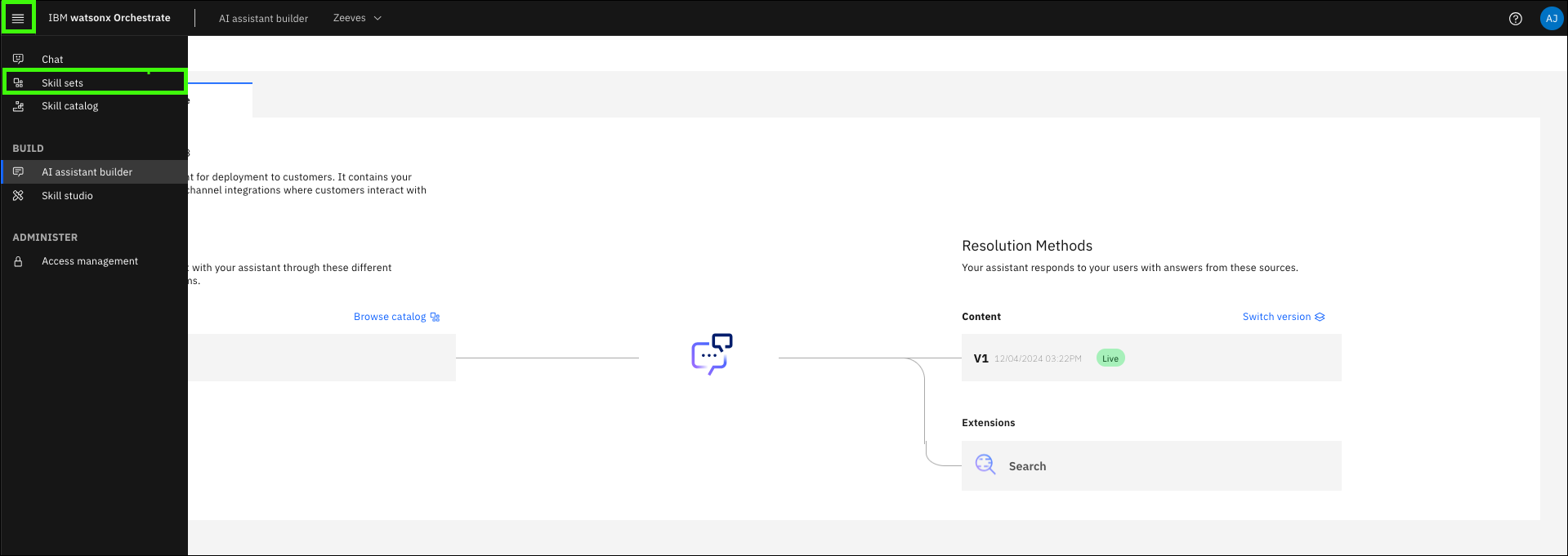 Select your assistant's live instance in the Skill sets list.
