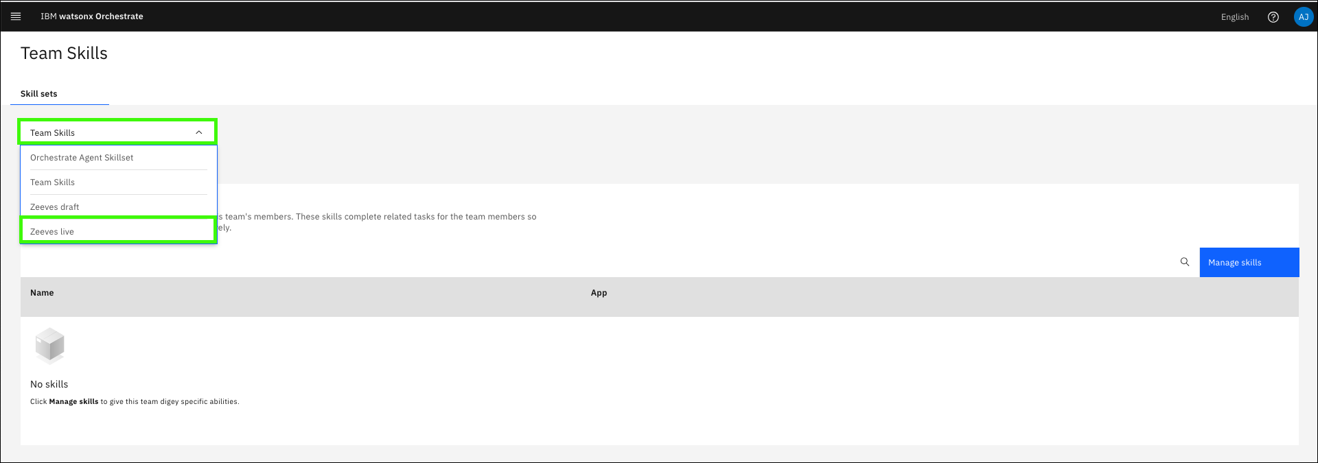 Click Skill sets in the main menu.