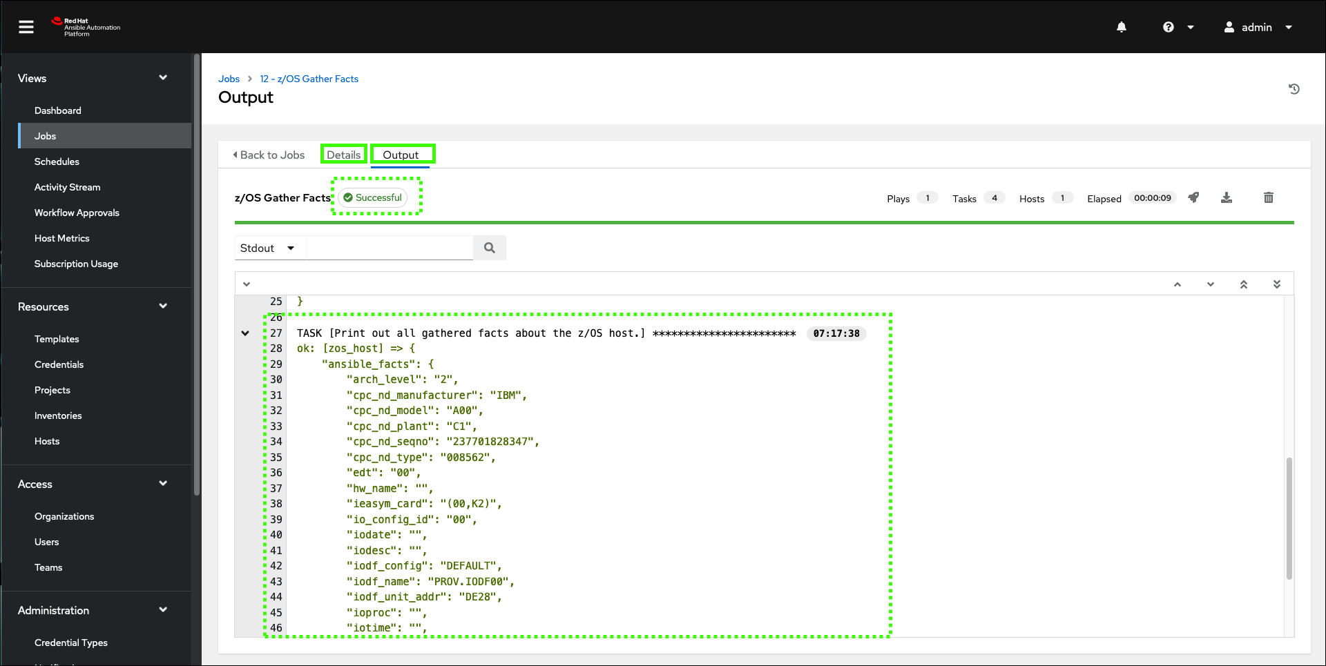 Return to the Ansible Automation Platform (AAP) console and review the job information.