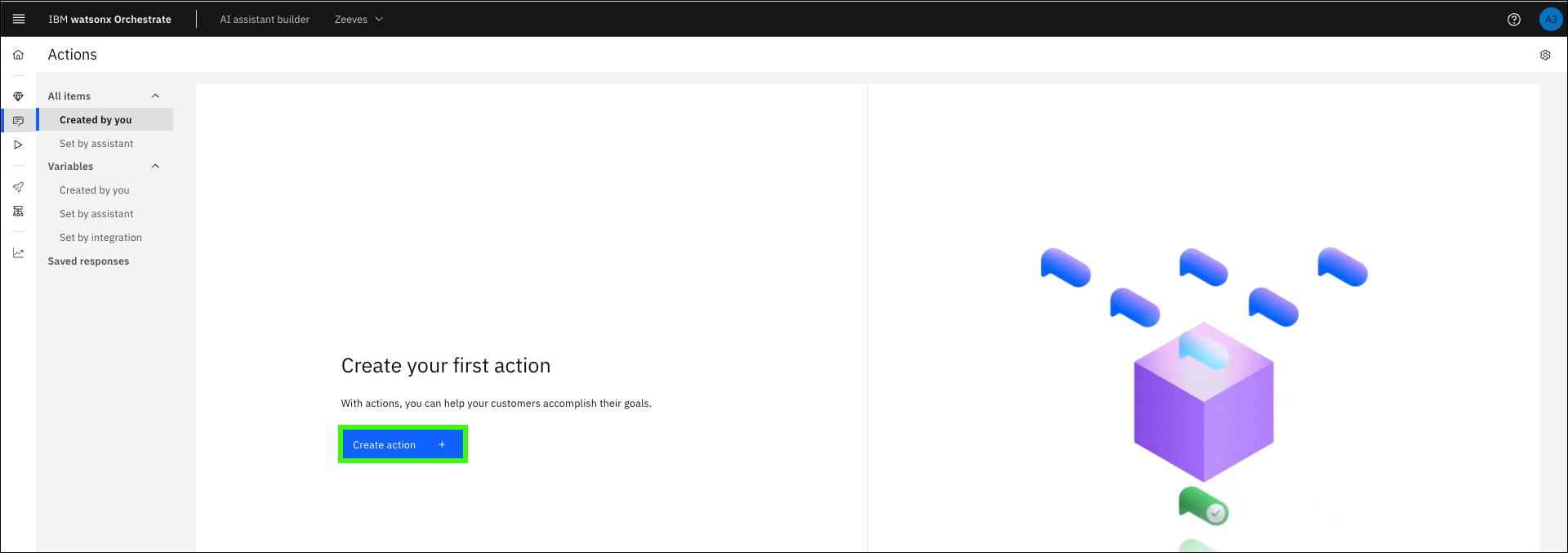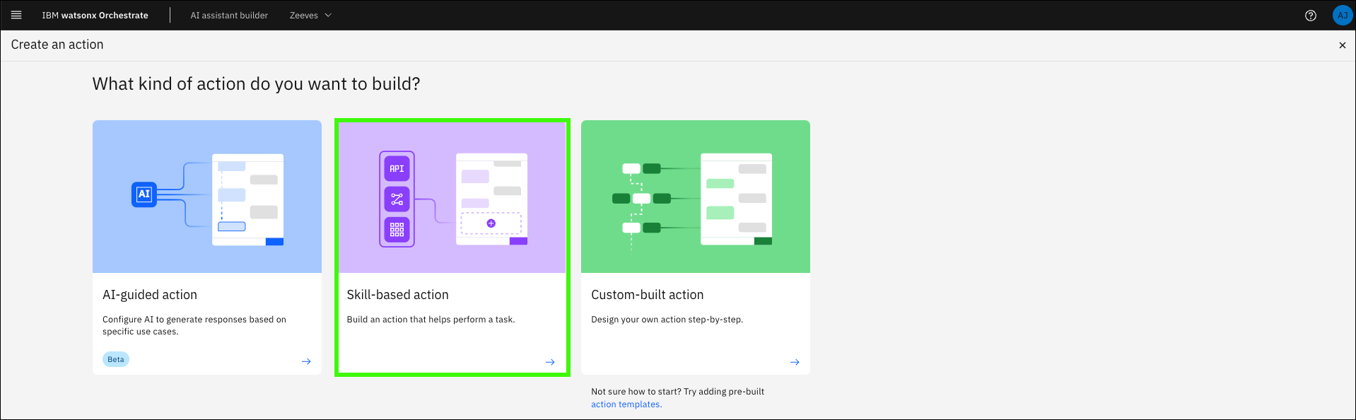 Now that the skills in your application are connected to your assistant, you are ready to create actions that are tied to those skills. Learn more about building actions here