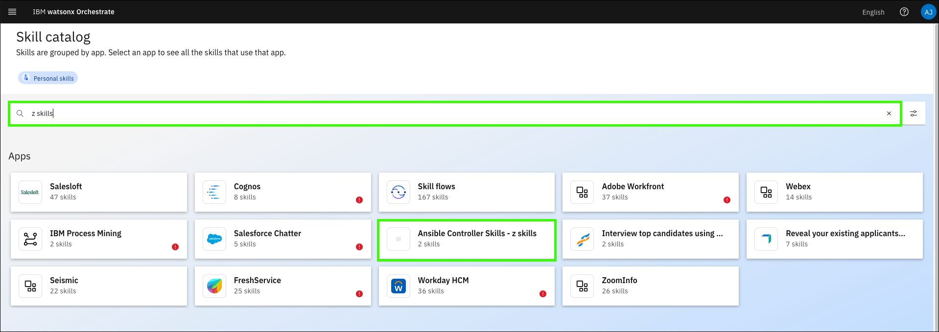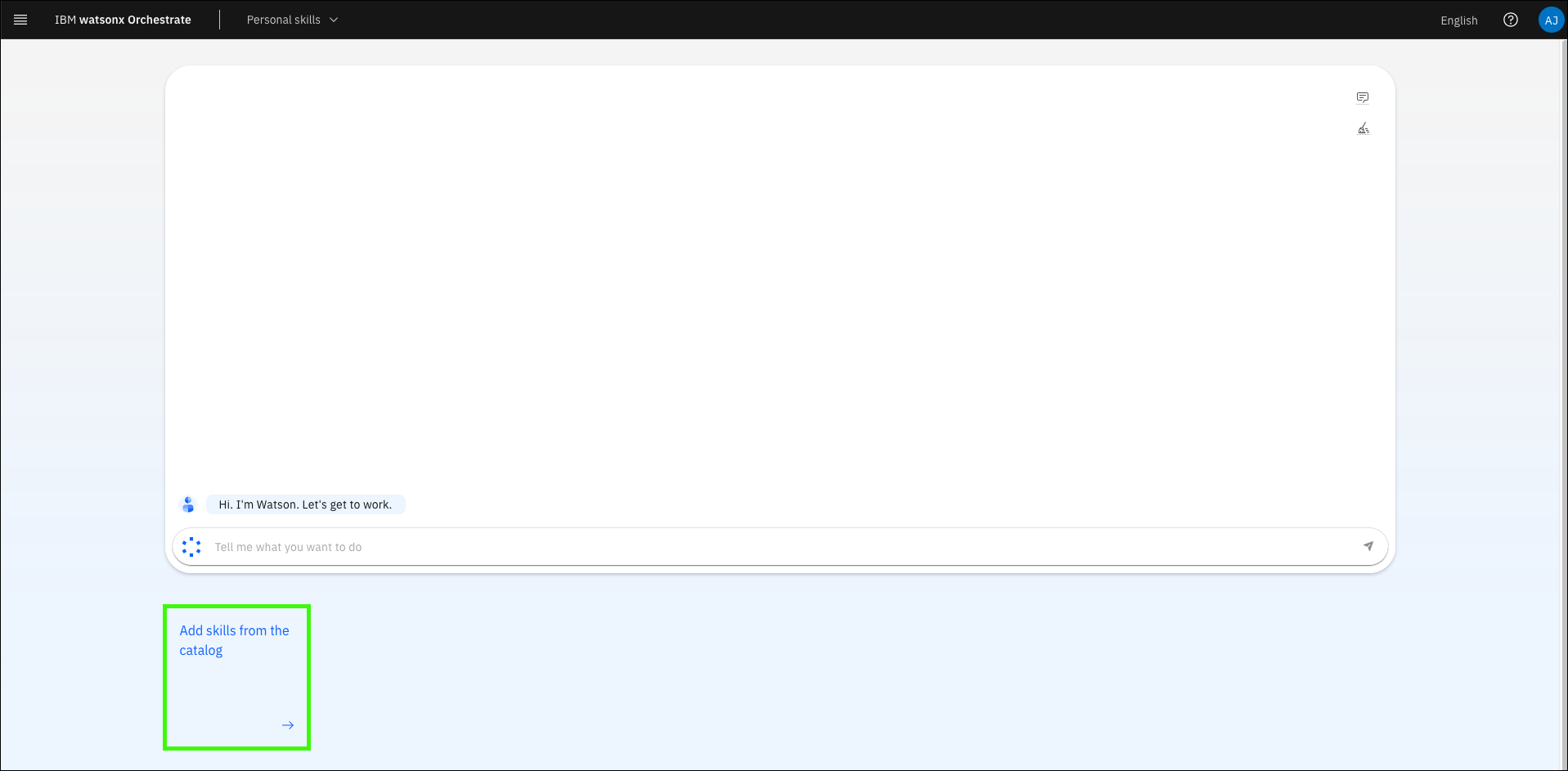 This error appears to be an intermittent issue when a skill is first added. To resolve, add the skill to your personal skills catalog using the steps that follow. If you encounter the issue, try the steps that follow: