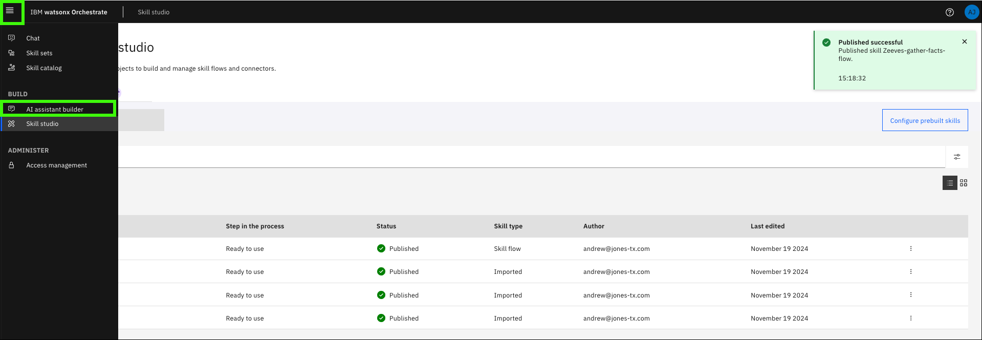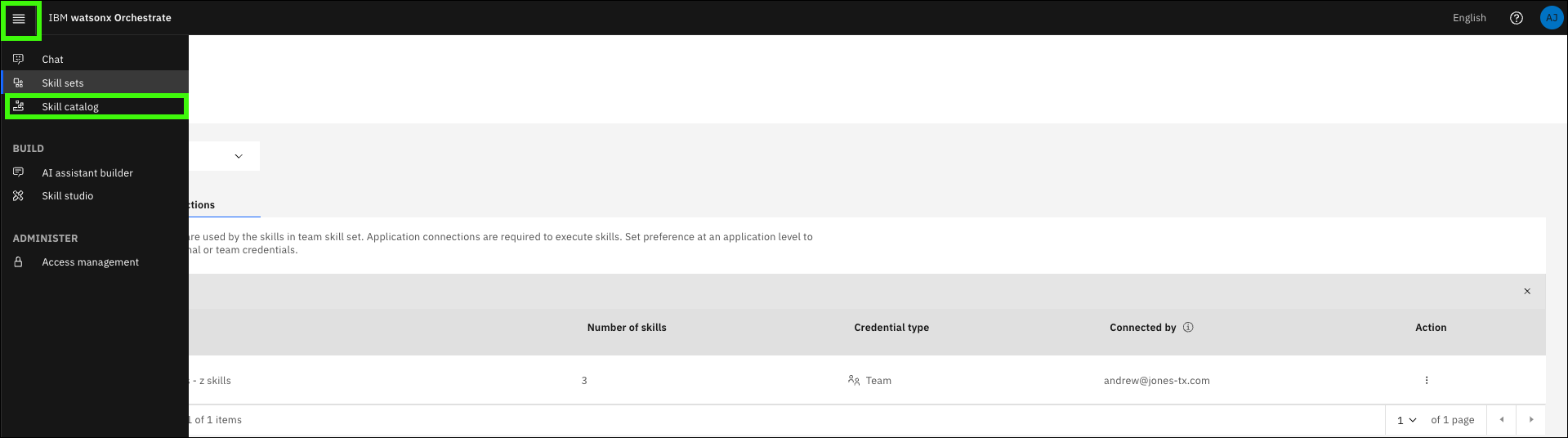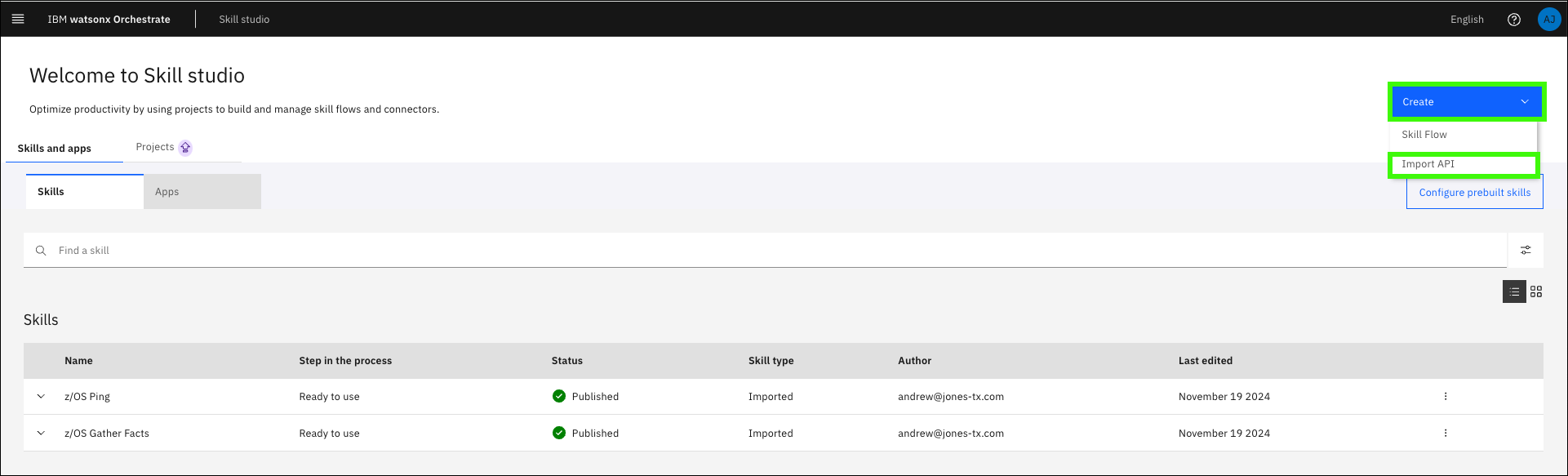 Open IBM watsonx Orchestrate Skill studio.