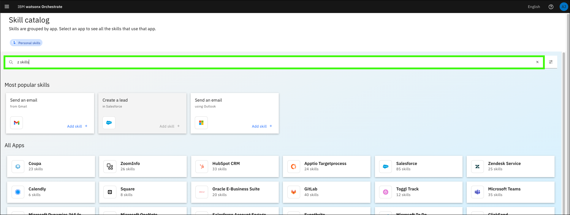 Click Skill catalog in the main menu.