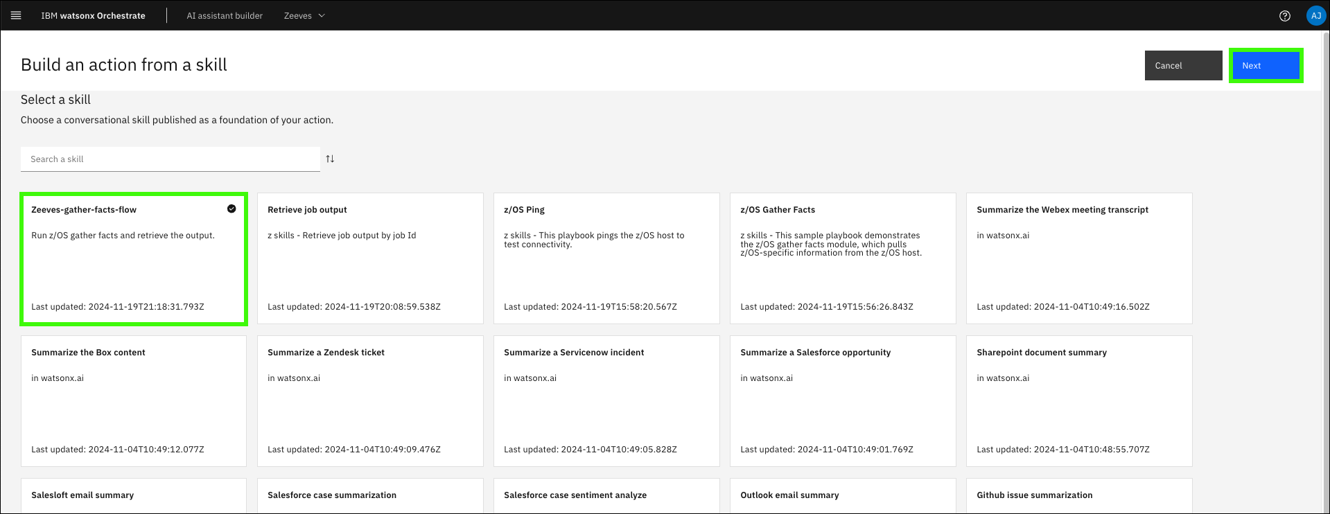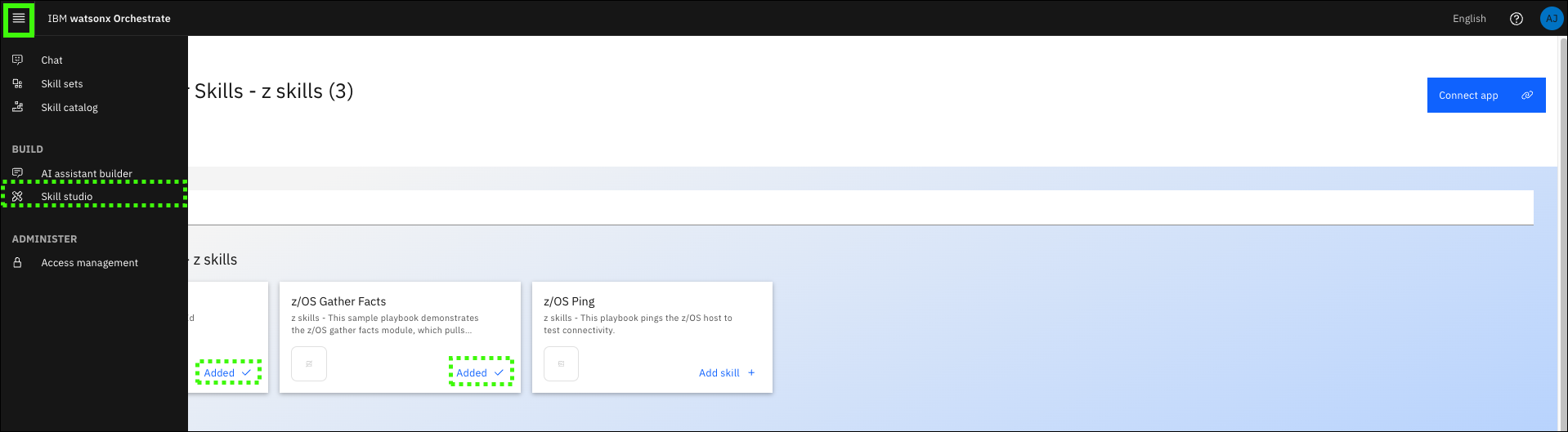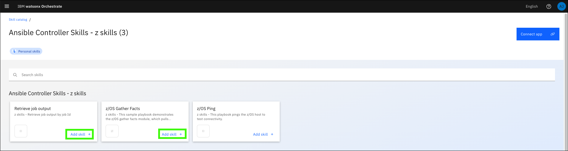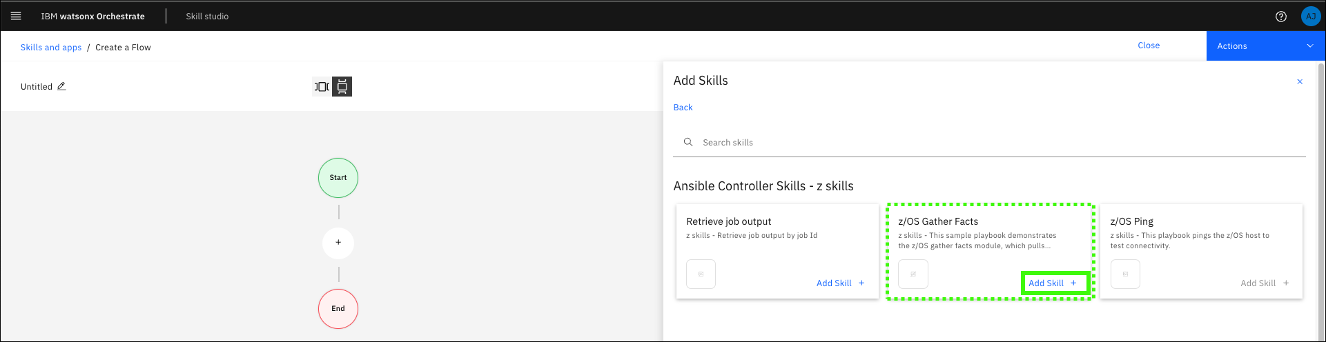 Click Add Skill in the z/OS Gather Facts tile.