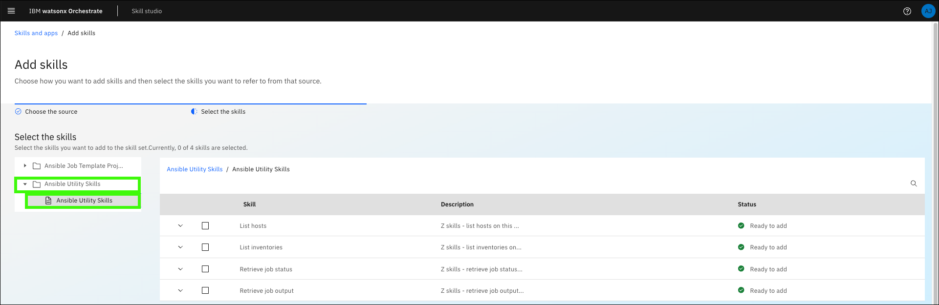 Expand Ansible Utility Skills and click Ansible Utility Skills.