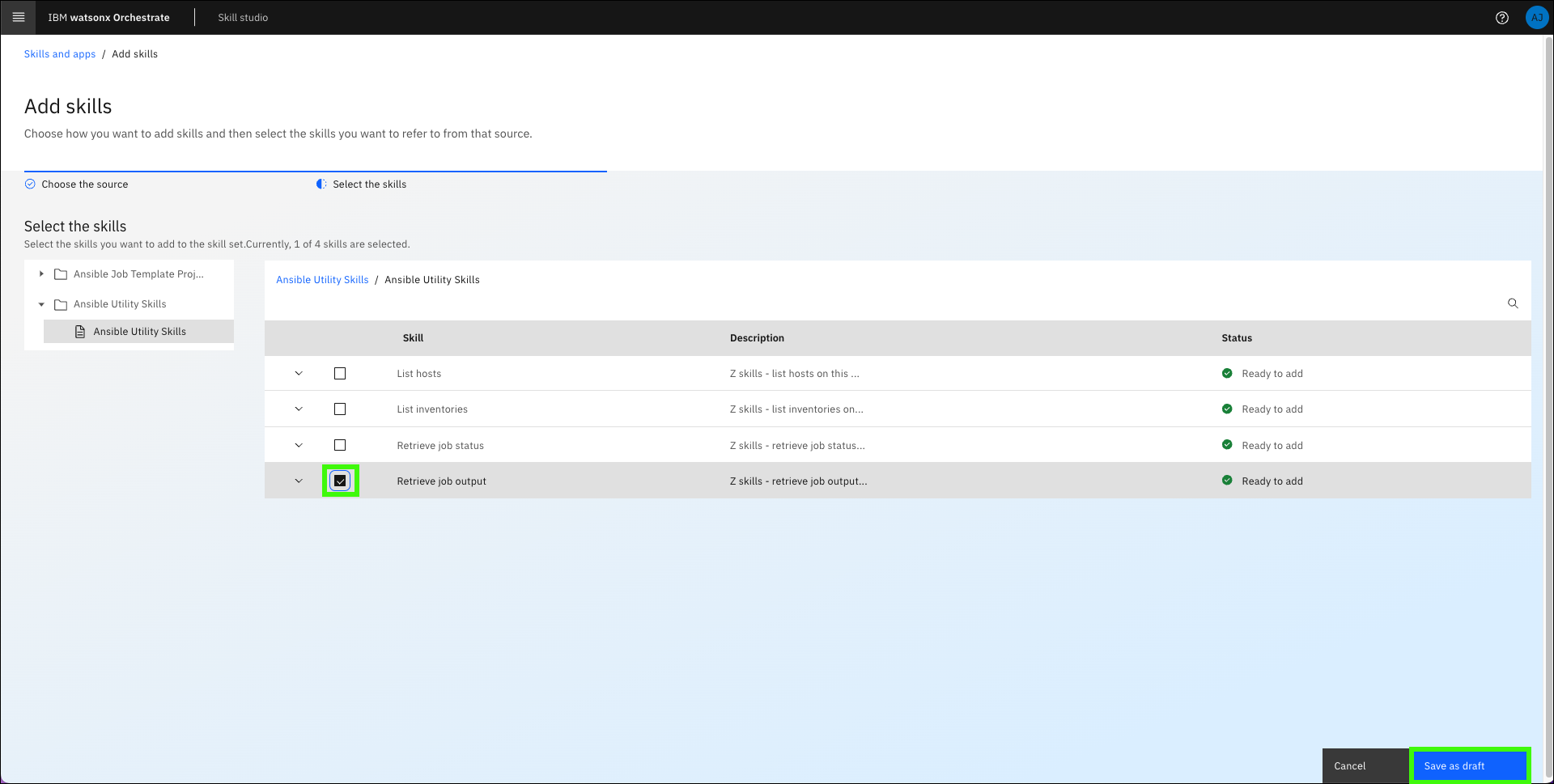 Select Retrieve job output and click Save as draft.