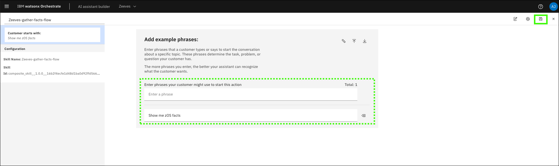 add phrases (prompts) that will be recognized by the assistant to call the skill flow
