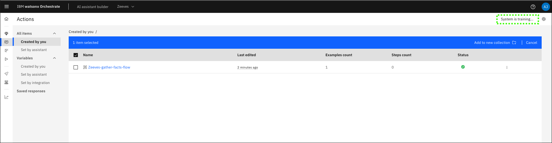 Wait for system training to complete.