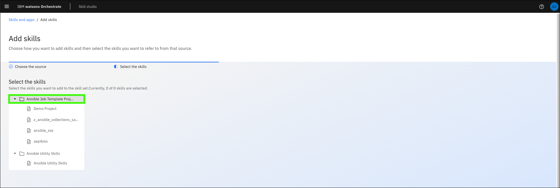 Importing skills from Ansible Automation Platform#