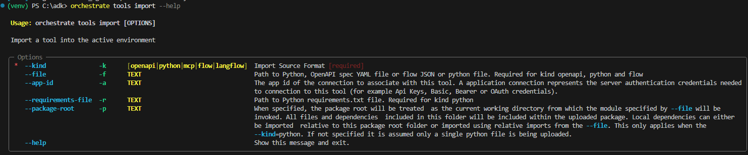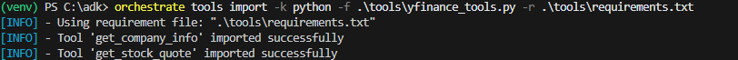 orchestrate tools import -k python -f .\tools\yfinance_tools.py -r .\tools\requirements.txt