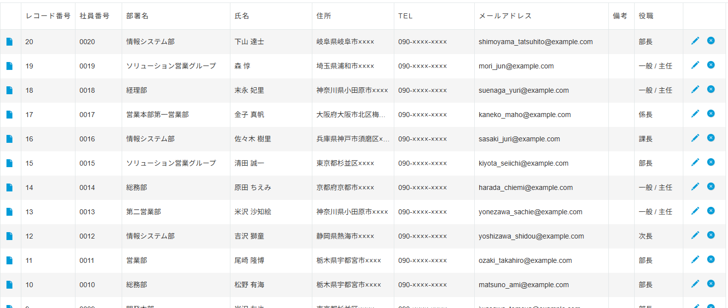 ご自身の社員番号を仮で決め、たとえば以下のように同じ部署の社員やそのレポートラインを共有できるようになっていれば、完成です。