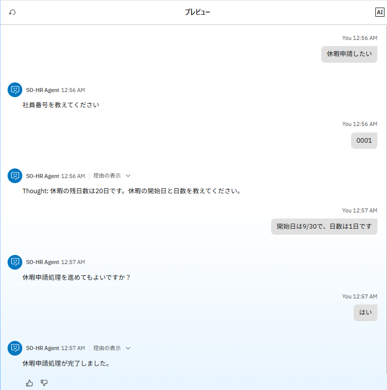 この Lab では、従業員が行う人事関連業務をアシストする AI エージェント作成を行います。