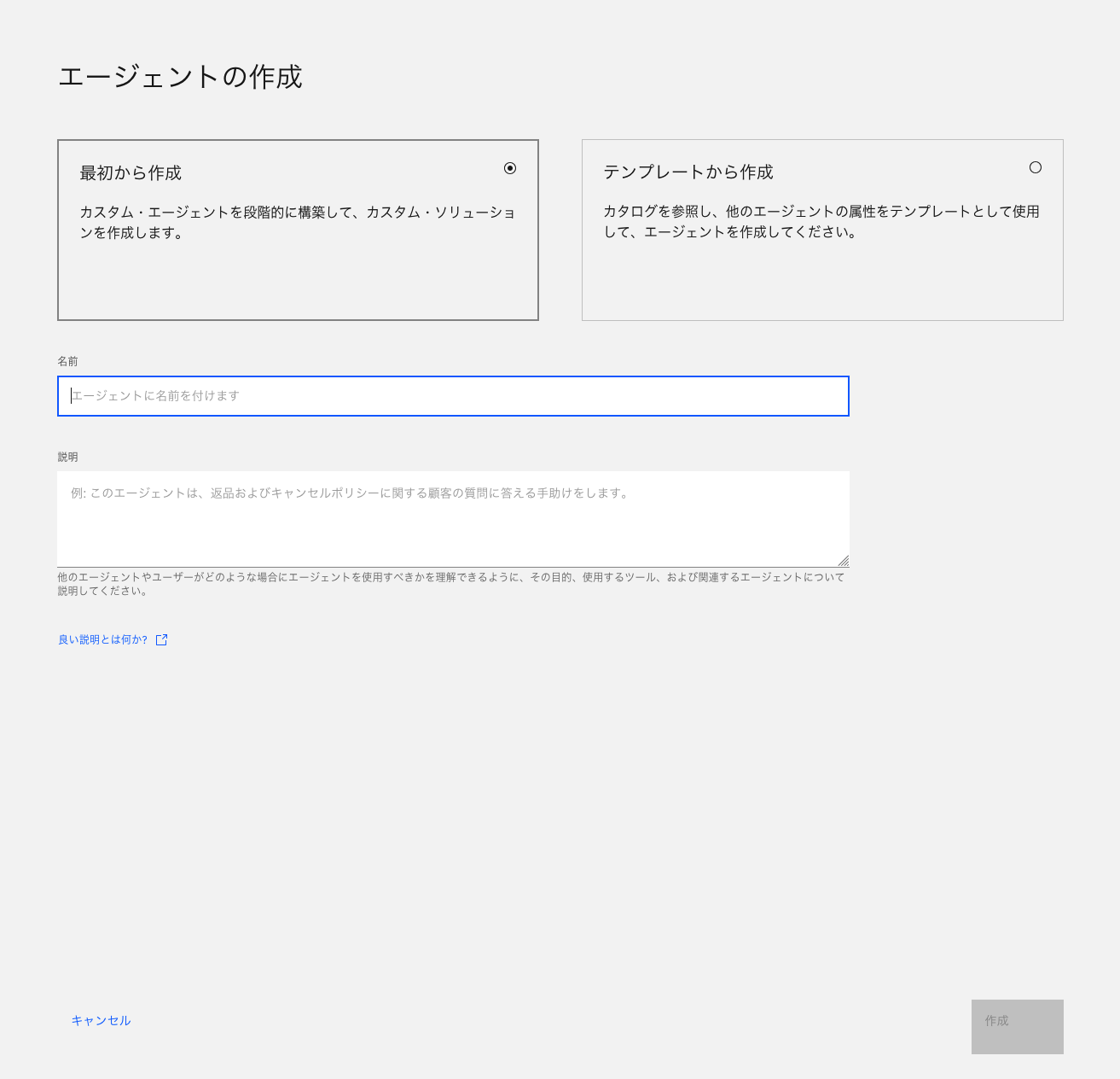 本シナリオはプリビルドエージェントを使用せず、1からエージェントを作成していただきます。