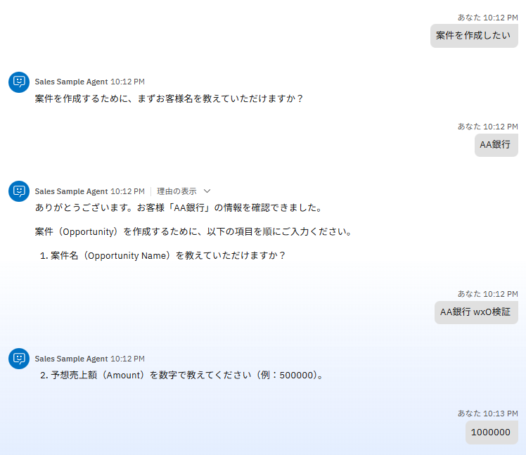 AIエージェントで無事にシナリオを実行できたら、最後に Salesforce で案件を作成できているか確認してみましょう。