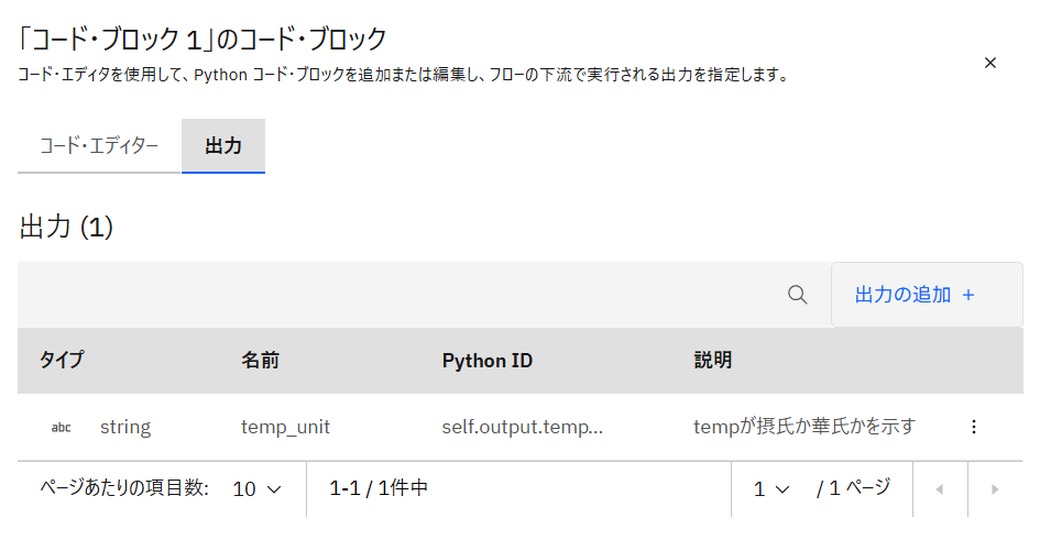 コード・ブロック2 をクリックし、表示された アウトプットの定義 をクリックします。