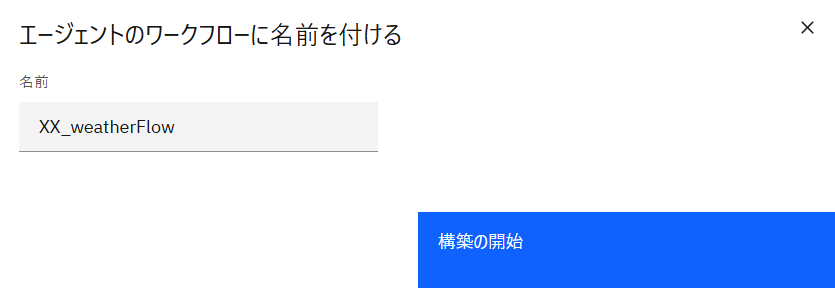 名前にXX_weatherFlow (XXにはイニシャルを設定してください。) を入力し、構築の開始ボタンをクリックします。