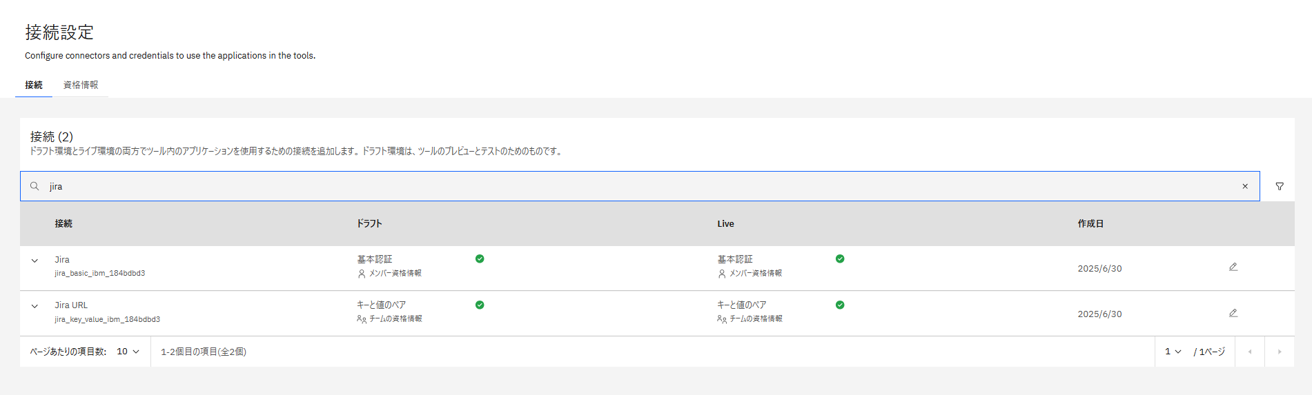 定義済みの接続を確認し、Jiraに接続するために必要な構成を行います。