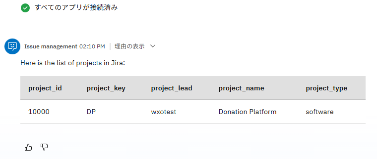 - 右側のチャット欄にプロジェクトのリストを表示してと入力してください。