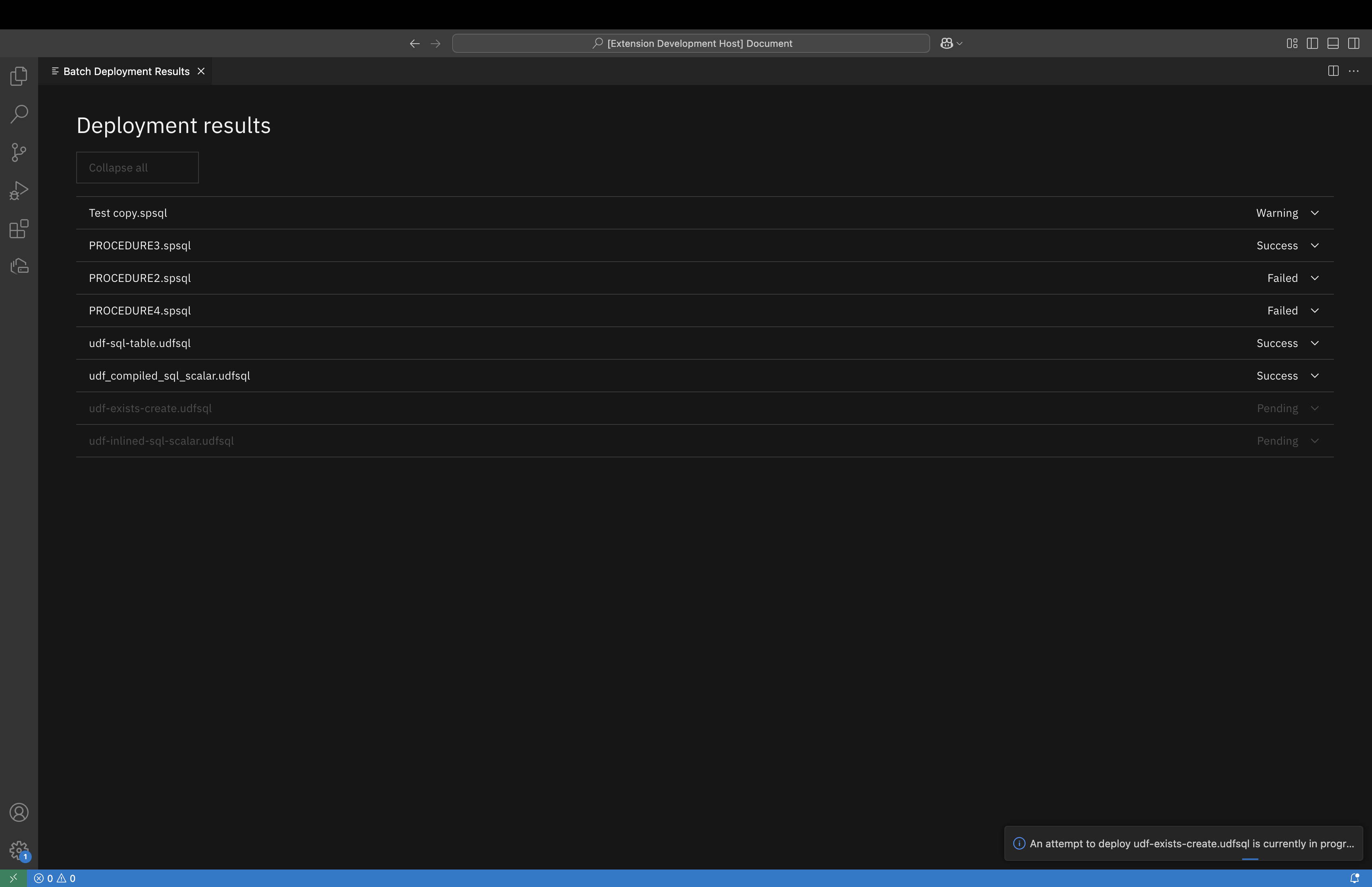 Click Deploy to start the deployment process. The Deployment results view is displayed, which provides the status and results for each routine: