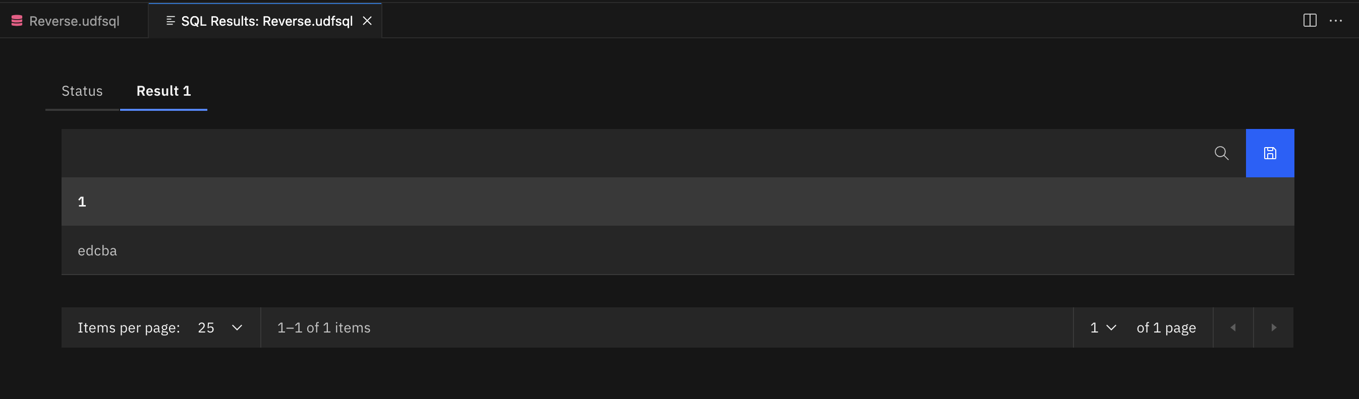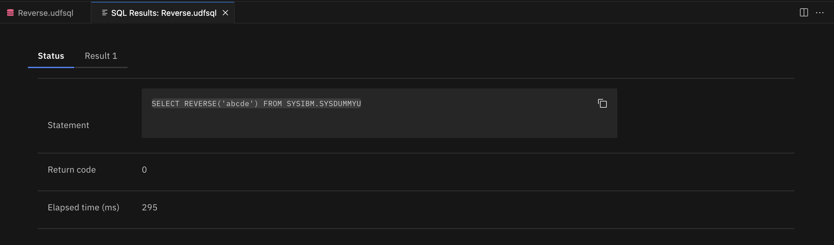Note: Currently, Db2 Developer Extension deployment option supports only one UDF per .udfsql file. When UDF options are specified, only the first UDF in the file will be executed; additional UDFs and SQL statements will be ignored.