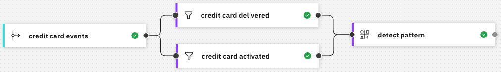 >=3 orderscannot resolve when there are three order events on the input streams, but the sorting of events prior to the matching step cannot progress without a newer watermark.As such, there are two detection modes available with respect to how the detect pattern node handles a stalled watermark: