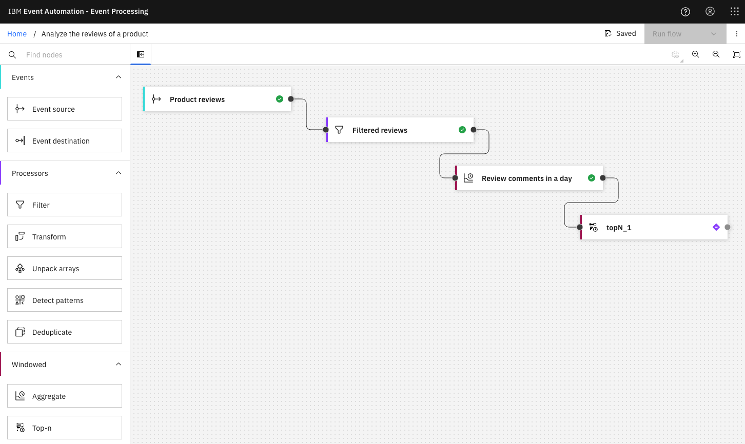 The final step is to run your event processing flow and view the results.