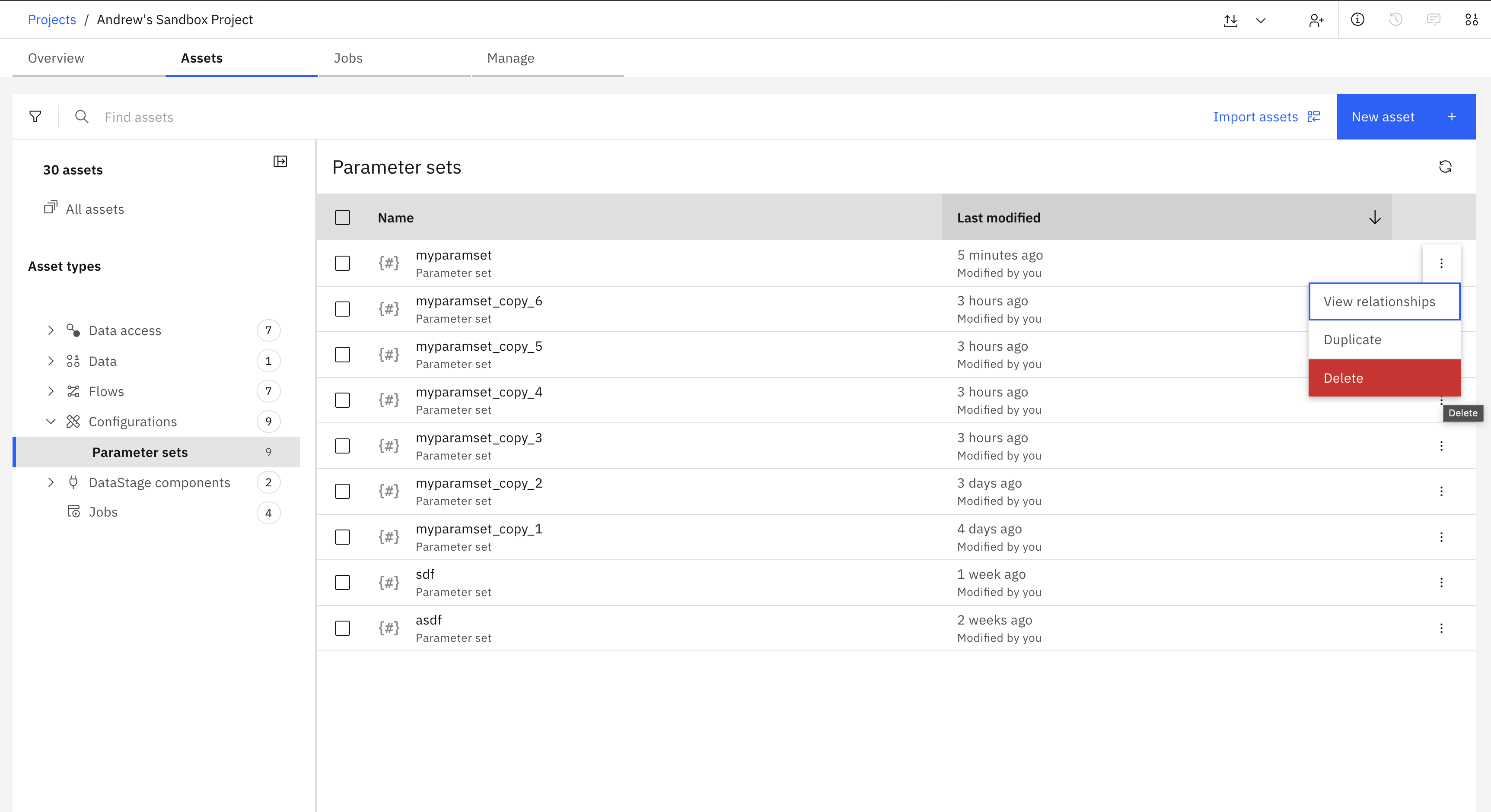 In the UI, you can delete an existing Parameter Set by navigating to the Assets -> Configurations -> Parameter sets.
