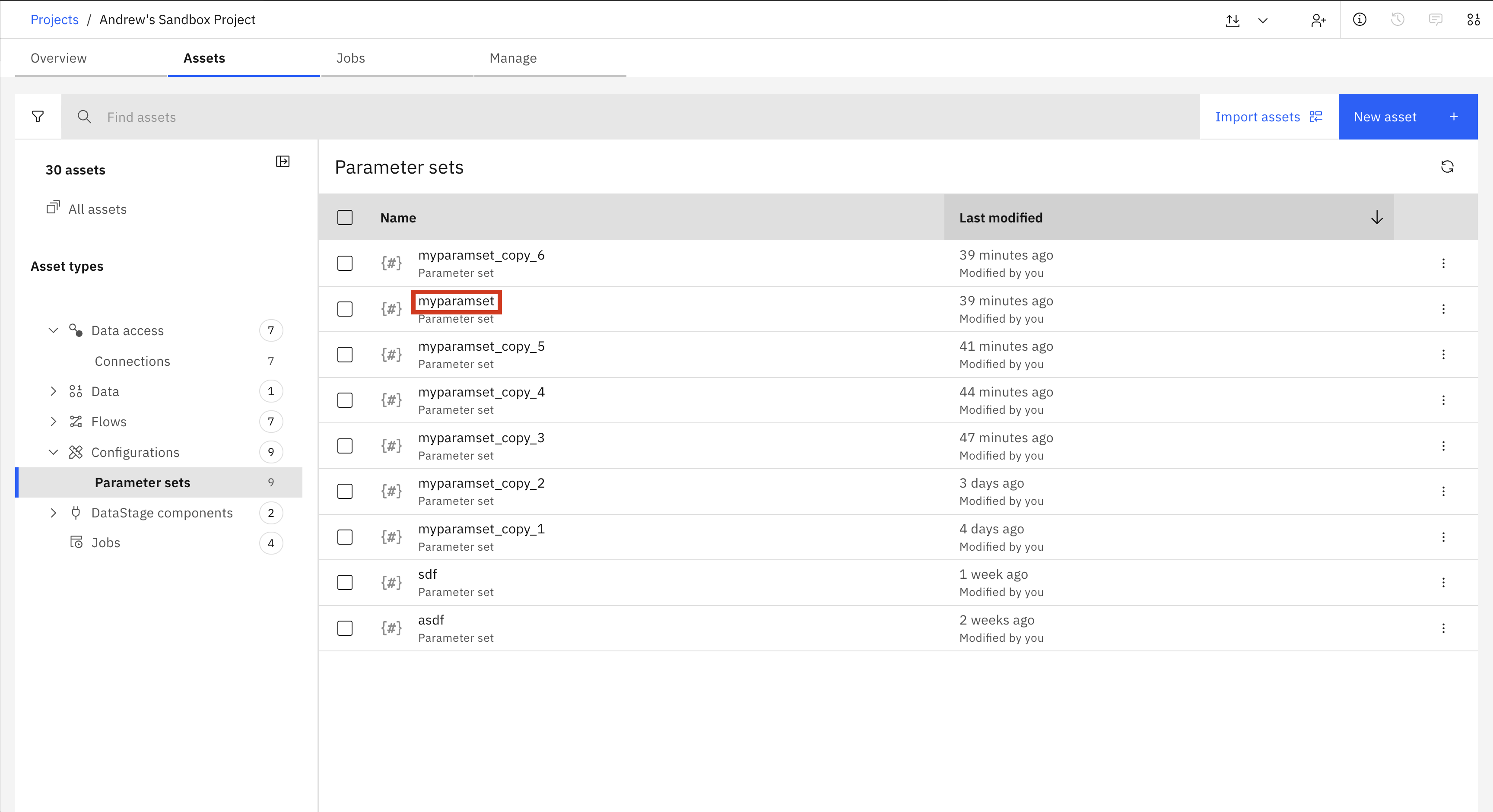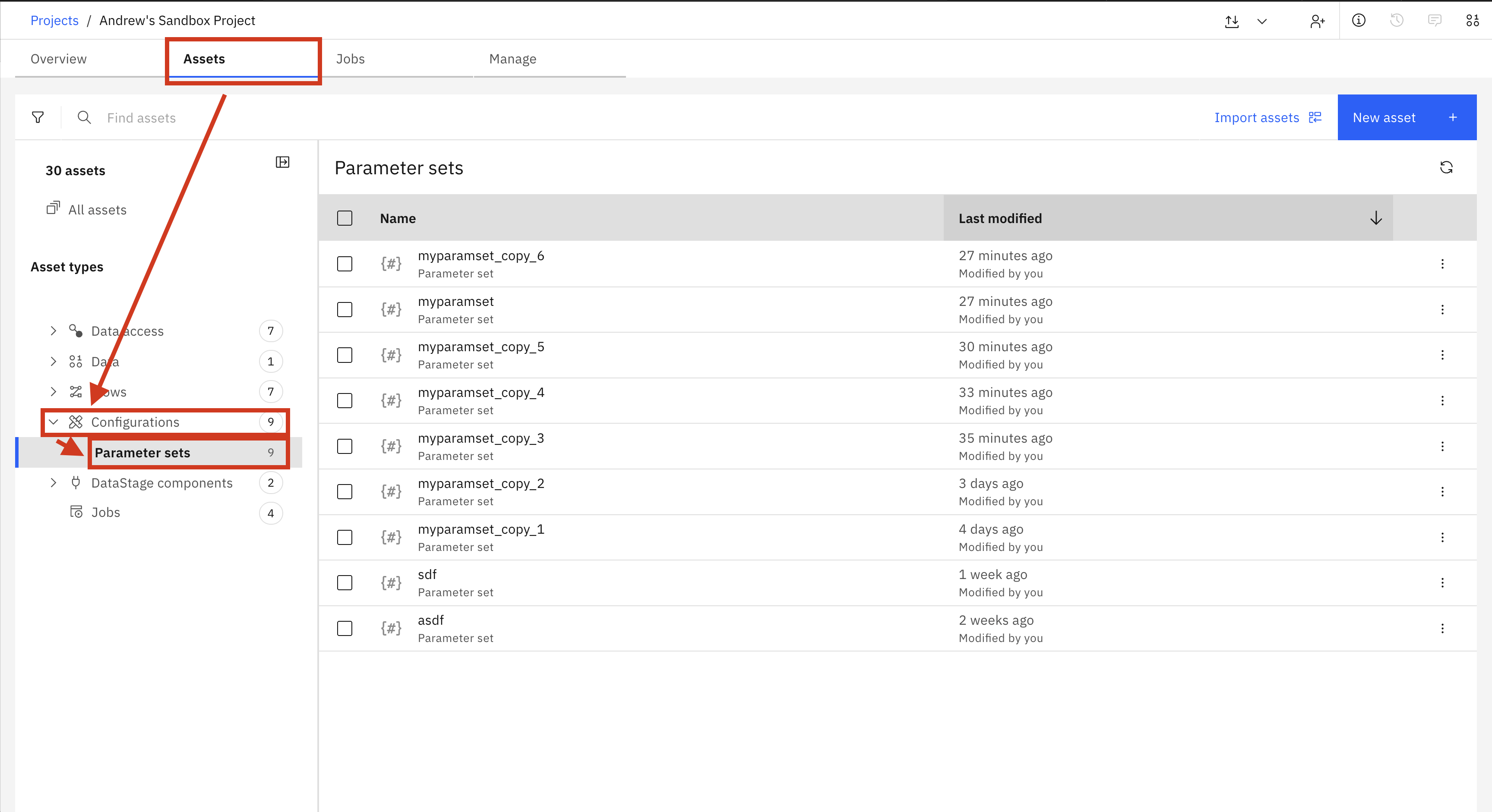 In the UI, you can update a Parameter Set by navigating to Assets -> Configurations -> Parameter sets and clicking the name of the Parameter Set you want to edit. This will take you to a new page where you can add, edit, and delete parameters.