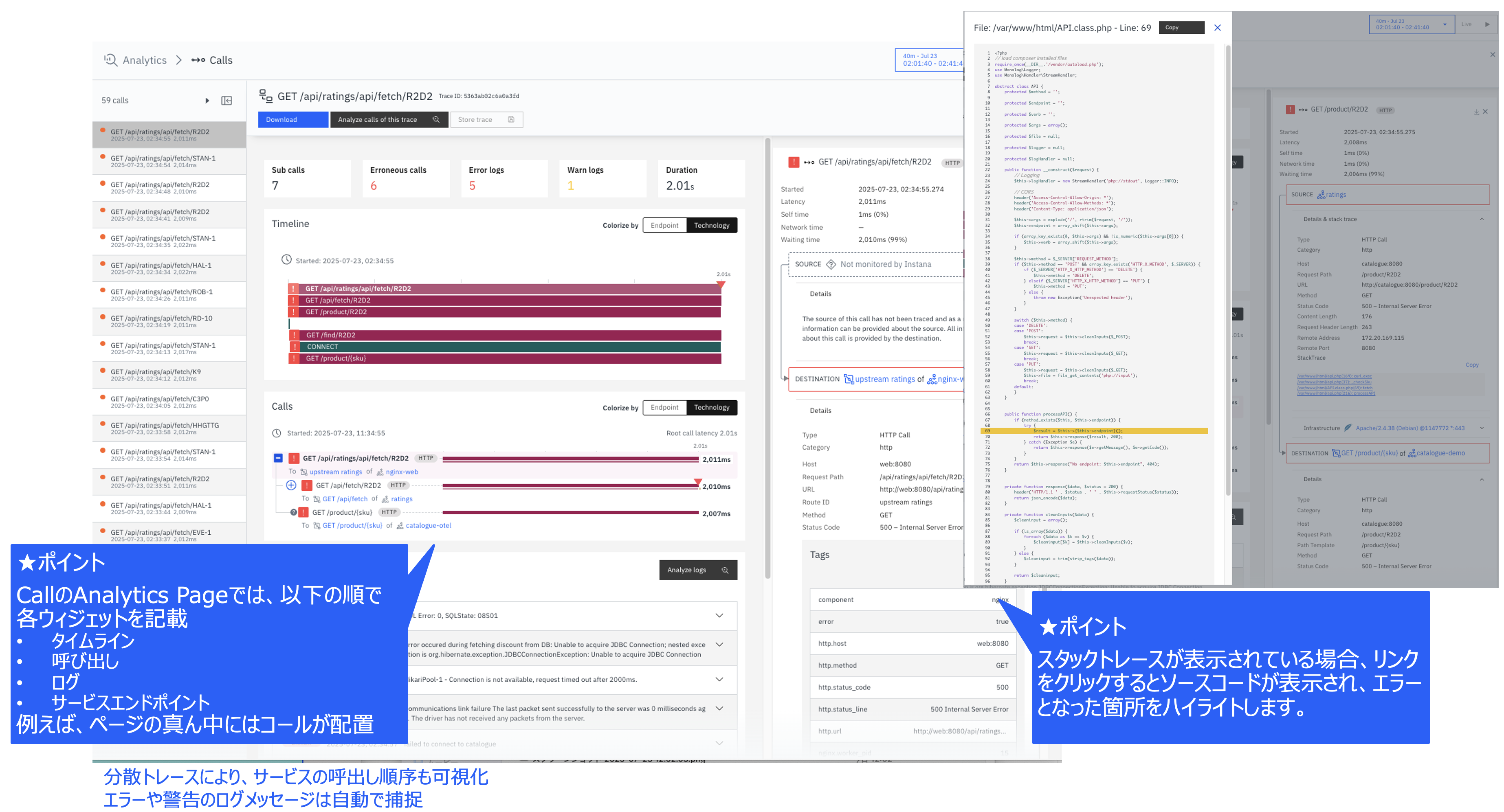 分析画面では、時間内の全てのエンドポイント呼び出しが表示されています。